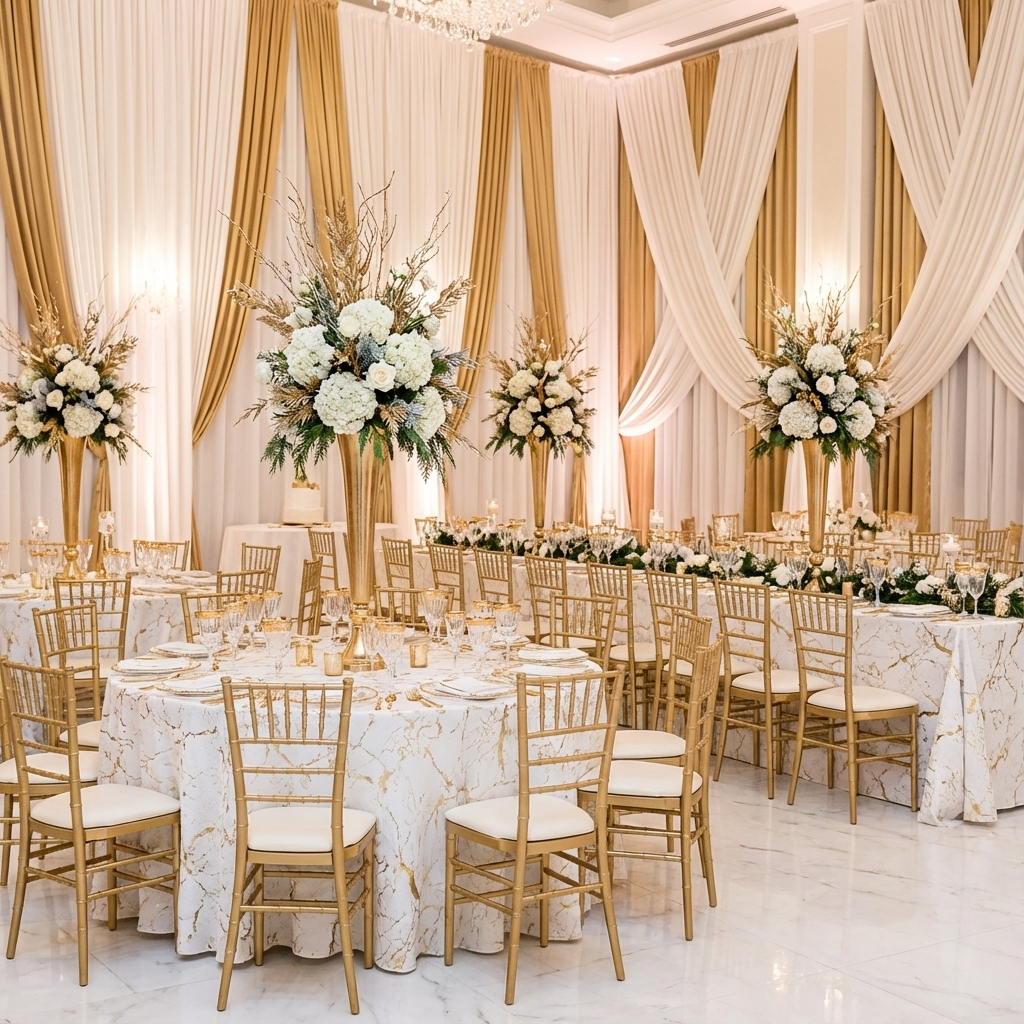 • All table linen (tablecloths, overlays, napkins runners, skirting etc),