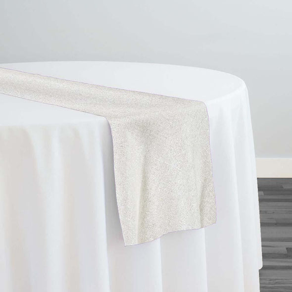Fabric Collection: This fabric has a burlap texture/design throughout and is made from polyester so it's easy to care for. It also has metallic threading to give it an elegant upgrade vs the traditional burlap look - This fabric is in a white color with silver metallic threading mixed in.