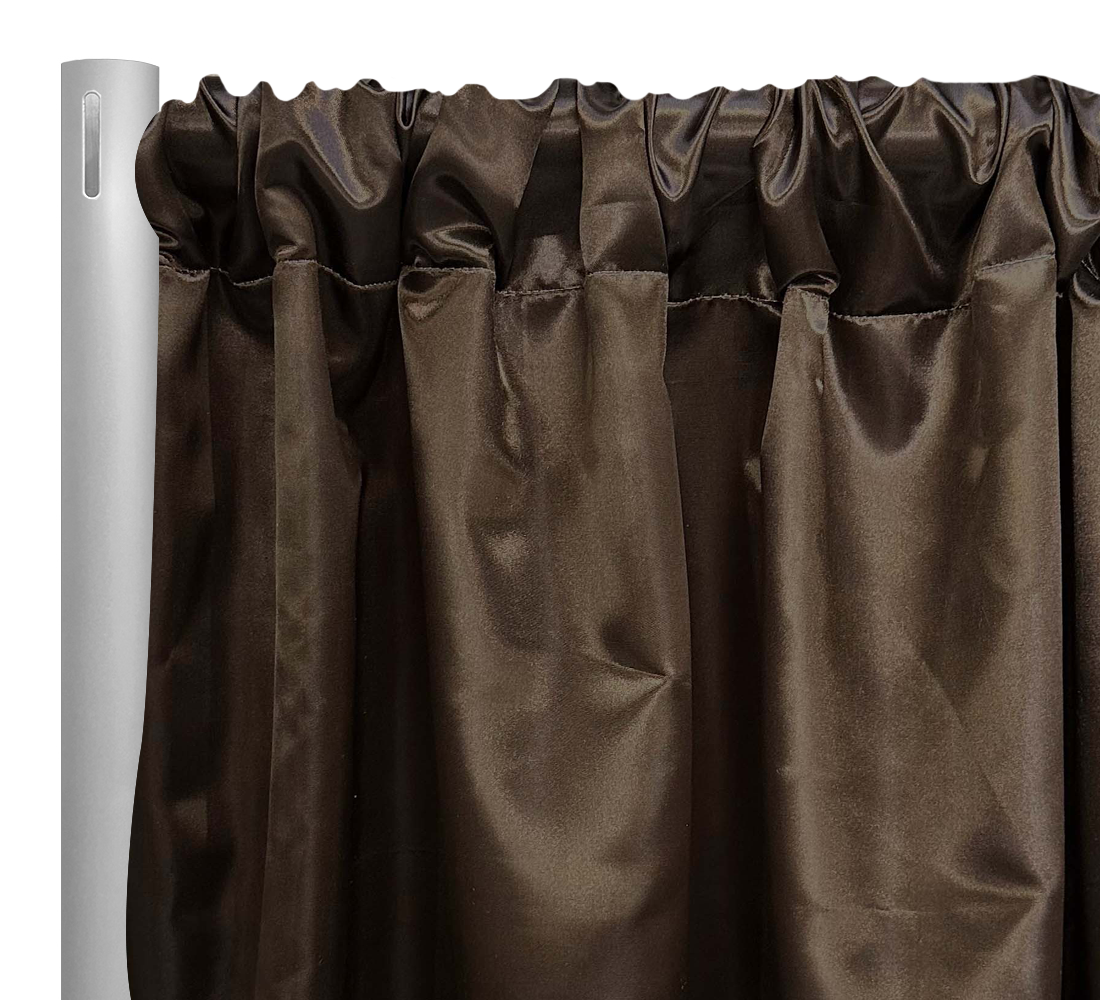 SIZE OPTIONS: Select your desired panel height above. Panels are approx. 58" wide and come standard with a 4" Rod Pocket on top. You can add a bottom Rod Pocket for an additional $5.00 per panel. Our drapes will work on any of our Pipe & Drape systems. Contact us at 800-590-9508 for custom sizing.