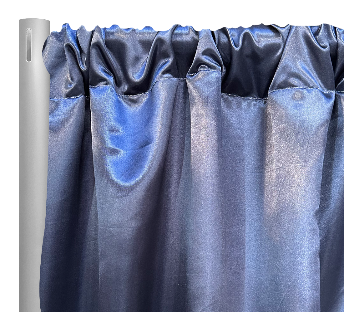 SIZE OPTIONS: Select your desired panel height above. Panels are approx. 58" wide and come standard with a 4" Rod Pocket on top. You can add a bottom Rod Pocket for an additional $5.00 per panel. Our drapes will work on any of our Pipe & Drape systems. Contact us at 800-590-9508 for custom sizing.