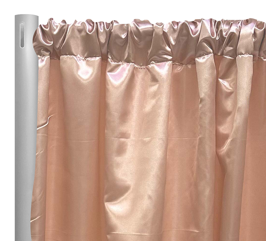 SIZE OPTIONS: Select your desired panel height above. Panels are approx. 58" wide and come standard with a 4" Rod Pocket on top. You can add a bottom Rod Pocket for an additional $5.00 per panel. Our drapes will work on any of our Pipe & Drape systems. Contact us at 800-590-9508 for custom sizing.