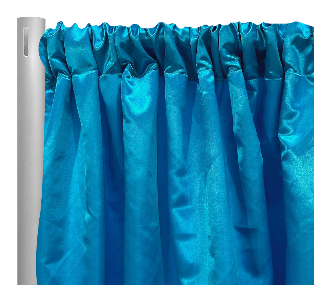 SIZE OPTIONS: Select your desired panel height above. Panels are approx. 58" wide and come standard with a 4" Rod Pocket on top. You can add a bottom Rod Pocket for an additional $5.00 per panel. Our drapes will work on any of our Pipe & Drape systems. Contact us at 800-590-9508 for custom sizing.