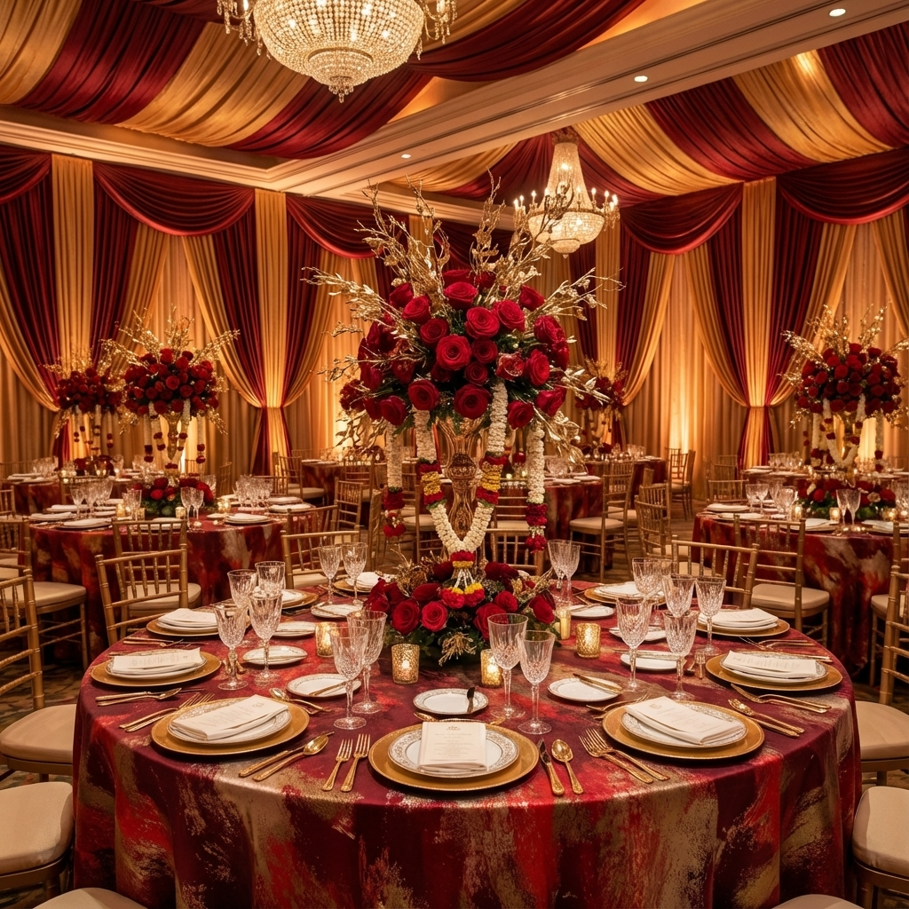 • All table linen (tablecloths, overlays, napkins runners, skirting etc),