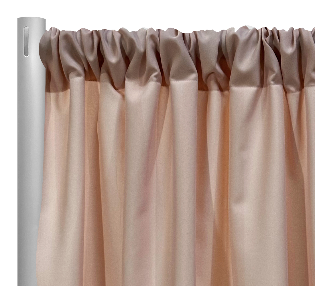 SIZE OPTIONS: Select your desired panel height above. Panels are approx. 58" wide and come standard with a 4" Rod Pocket on top. You can add a bottom Rod Pocket for an additional $5.00 per panel. Our drapes will work on any of our Pipe & Drape systems. Contact us at 800-590-9508 for custom sizing.