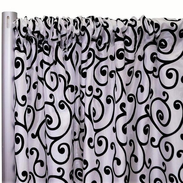 Swirl Flocking Taffeta Drapery Panels (58" Wide) / 14 Colors