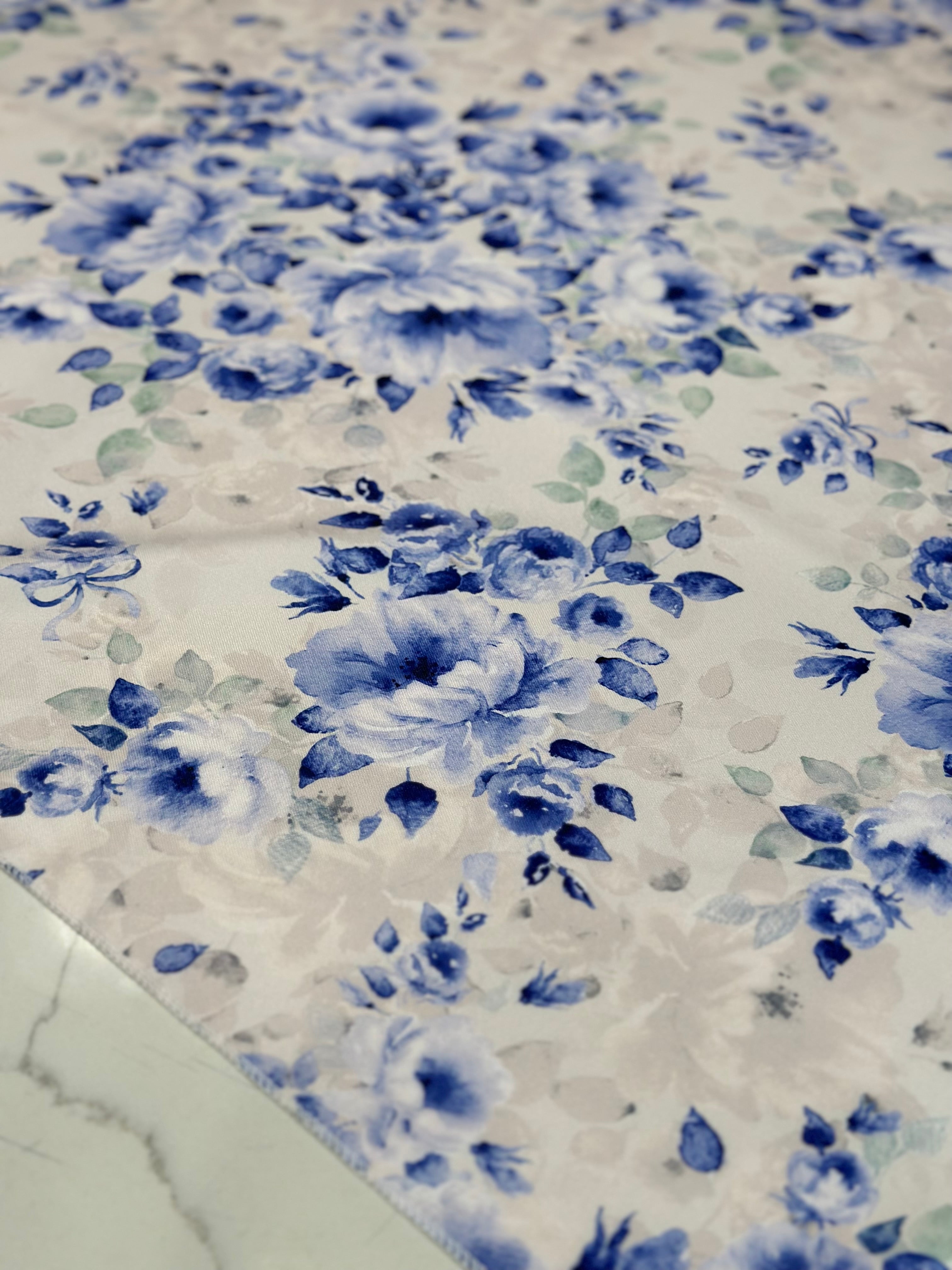 Fabric Collection: This fabric has a 100% polyester base with our "Blue Flora" prints.