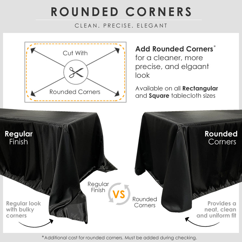 Table linen sizes that exceed the width of the fabric will have seams. All seams are sewn with 5 thread overlock sergers for long lasting durability.