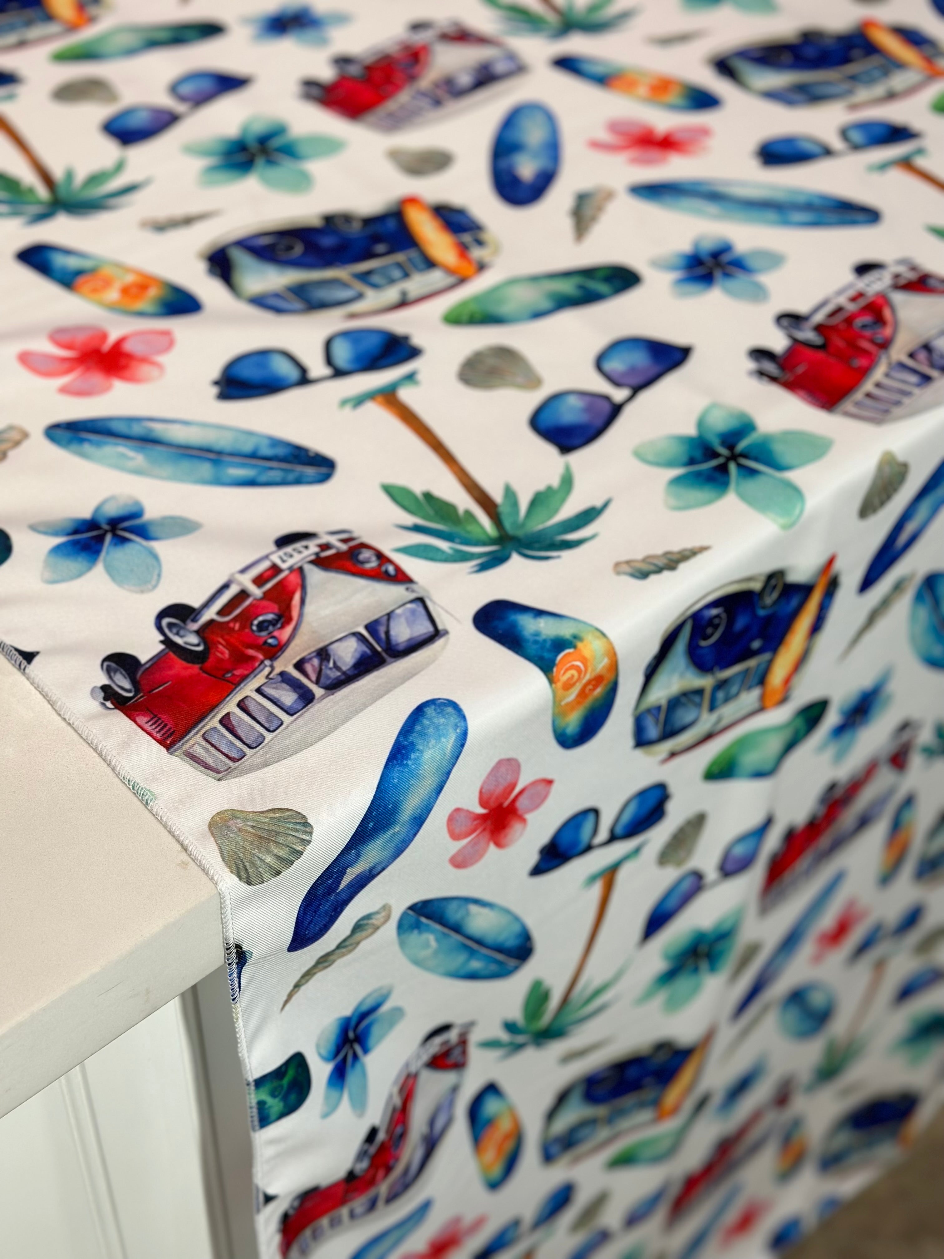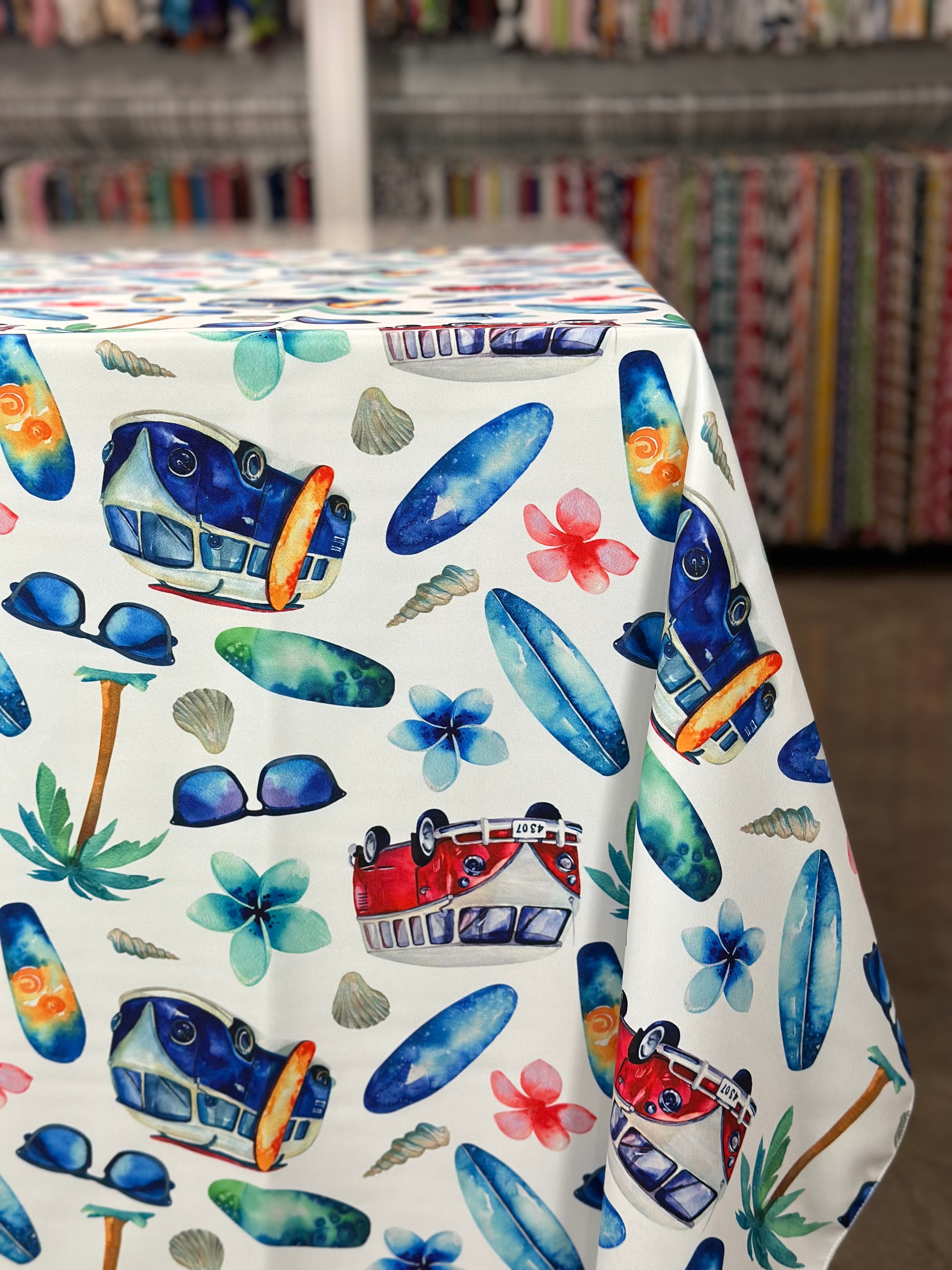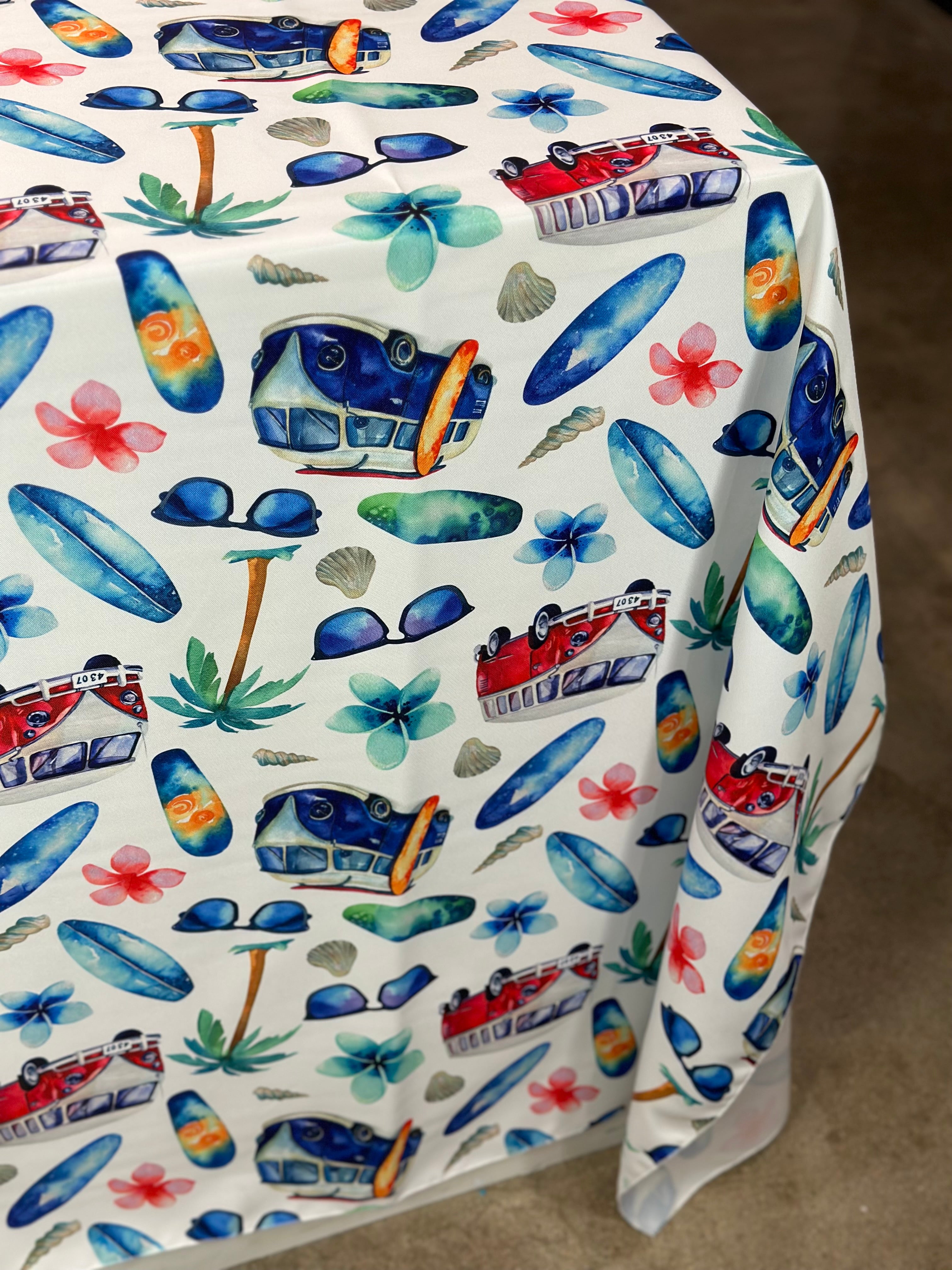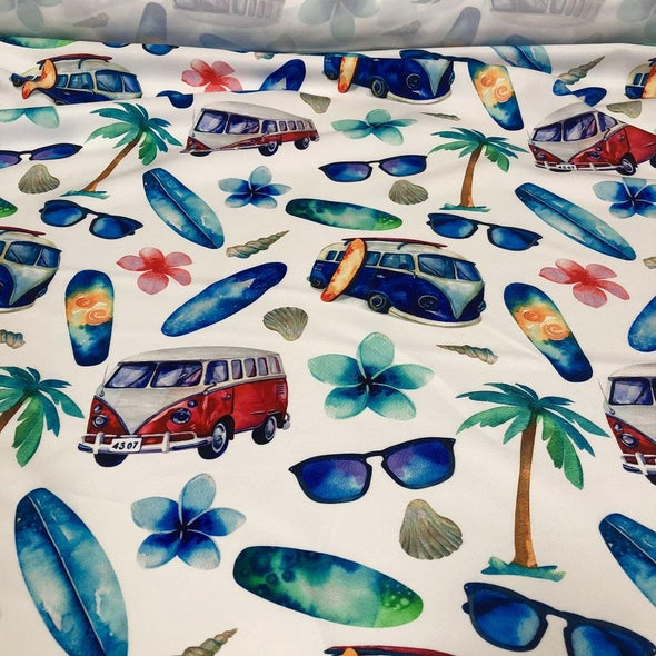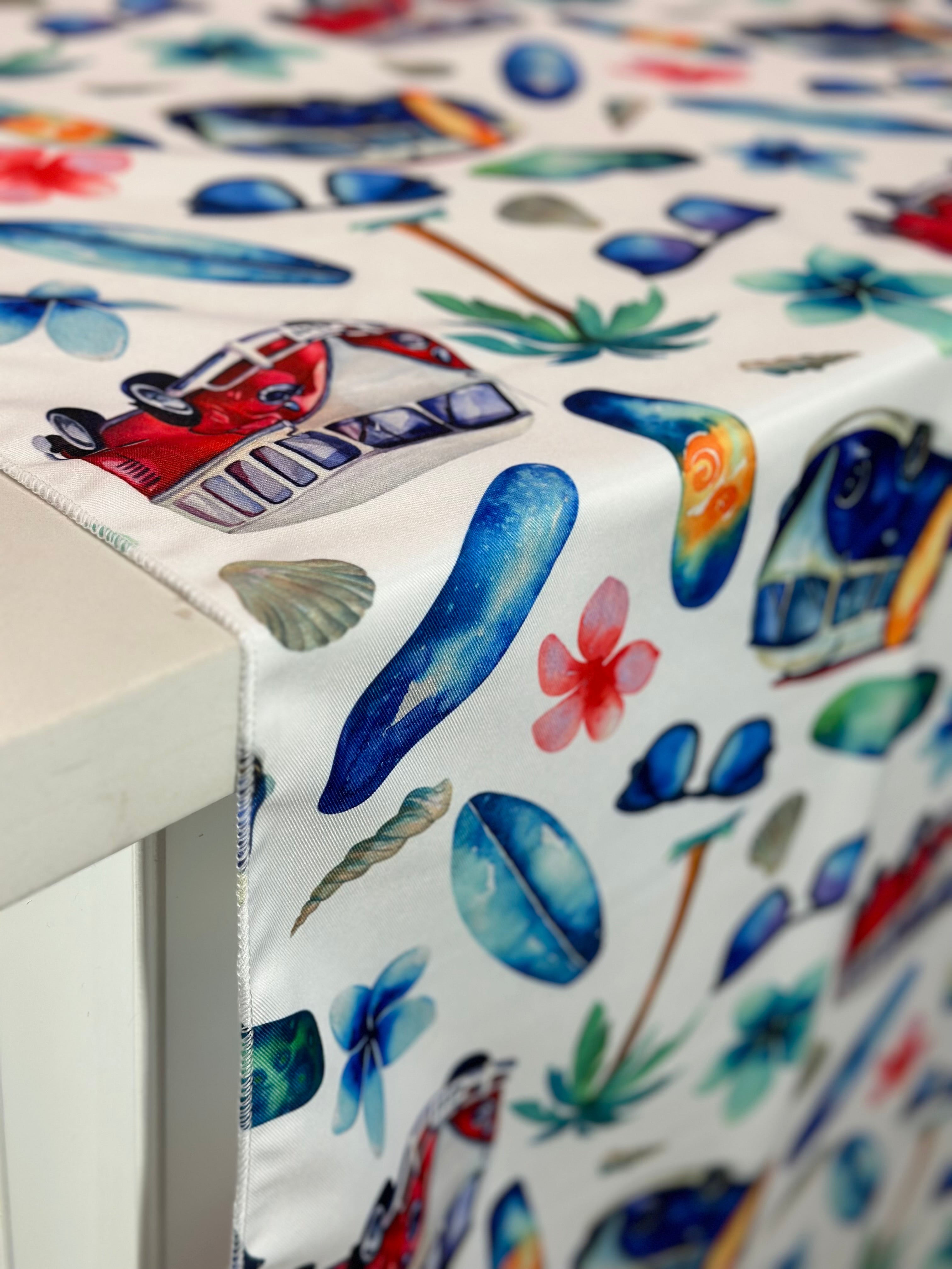 Fabric Collection: This fabric is a Polyester base with our "Surf's Up" print throughout.