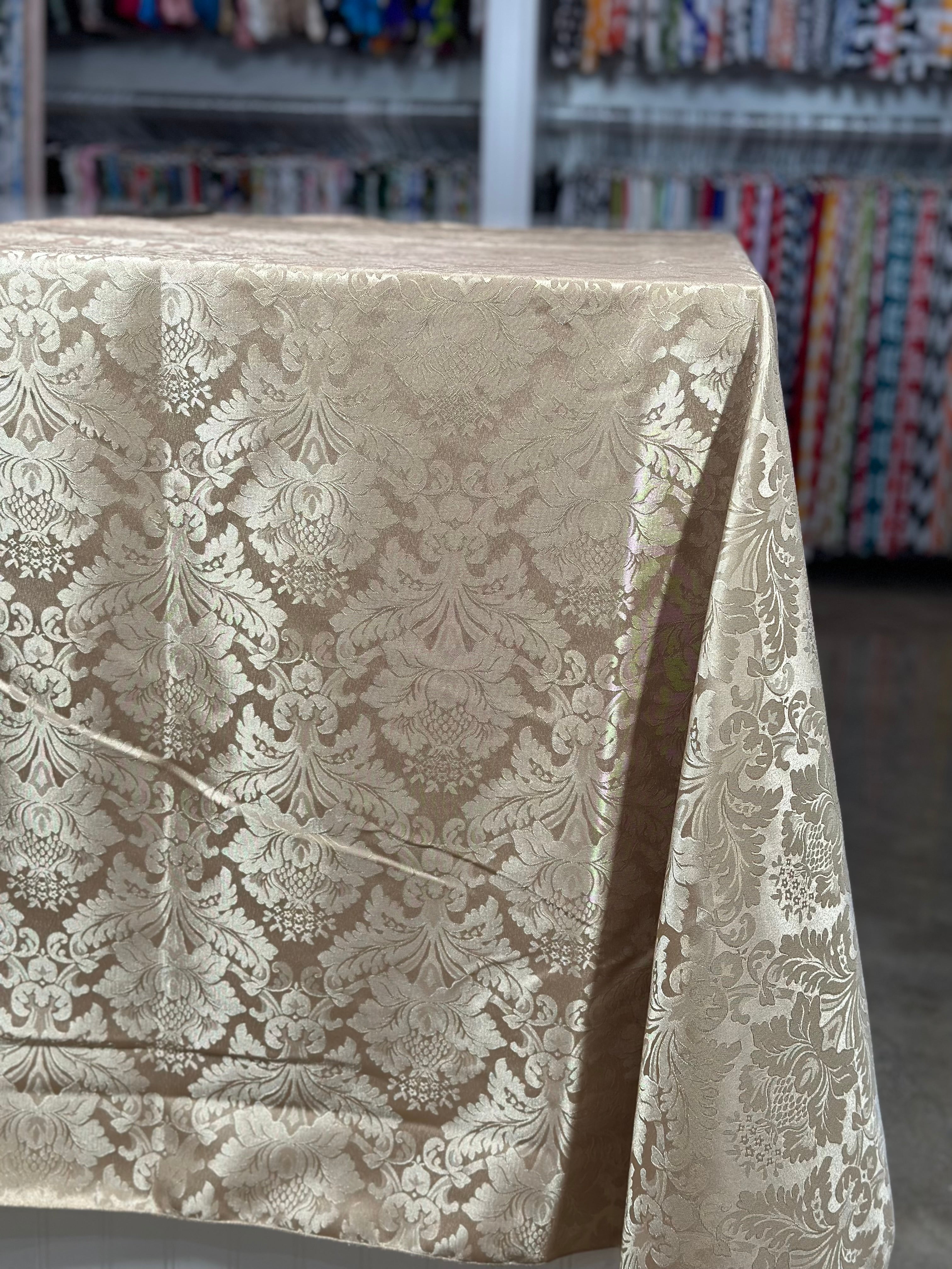 Damask Poly Table Linen in Taupe 1189