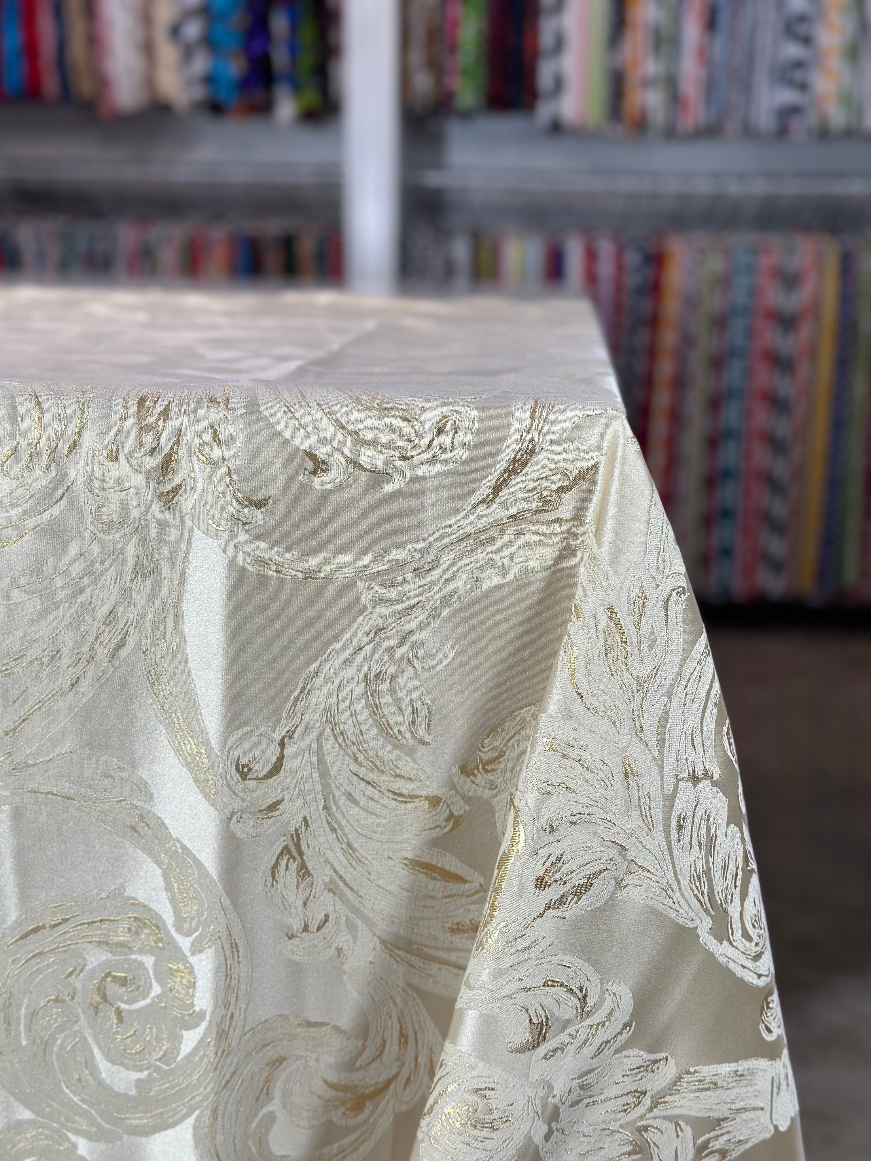 Table linen sizes that exceed the width of the fabric will have seams. All seams are sewn with 5 thread overlock sergers for long lasting durability.