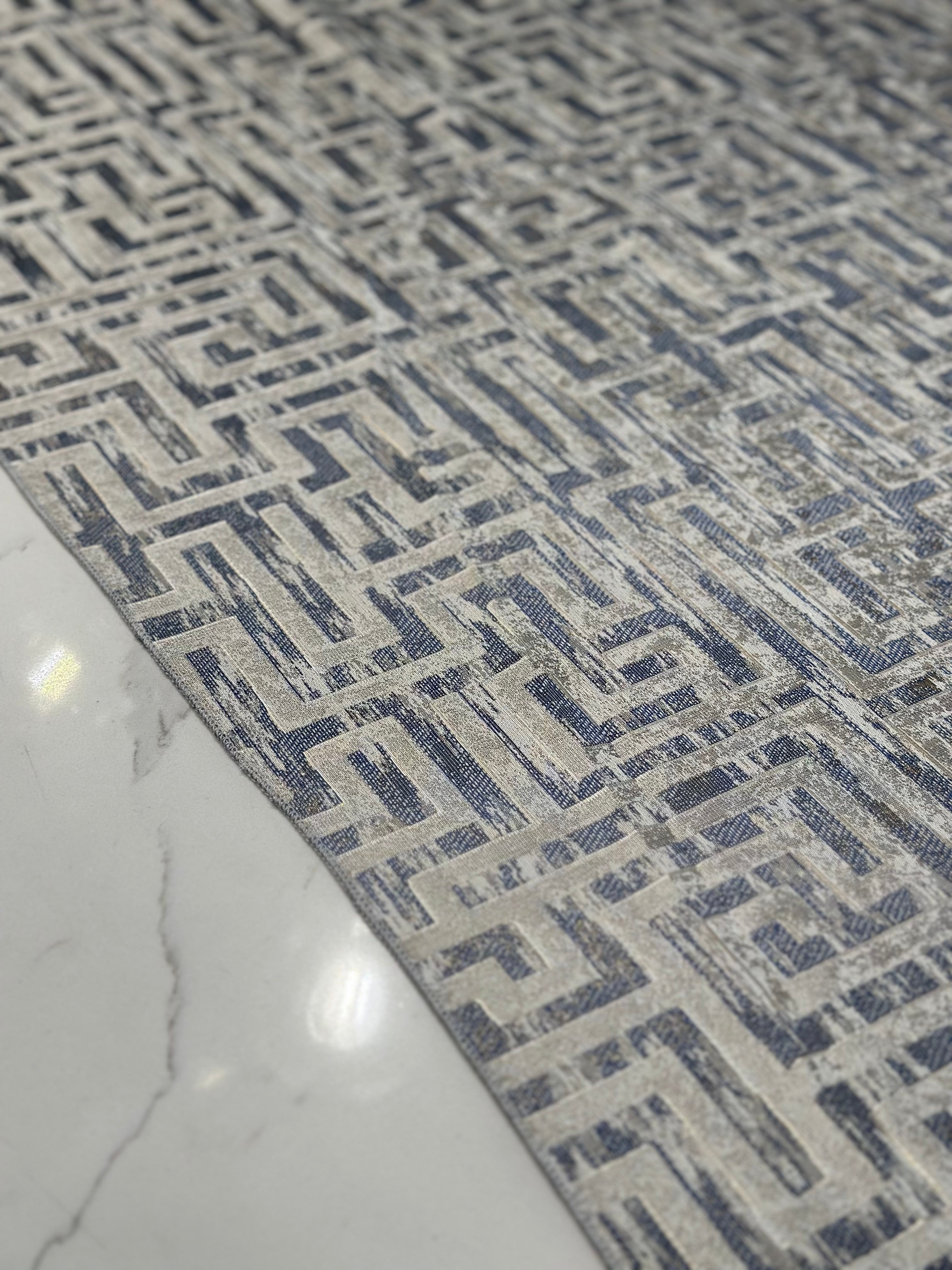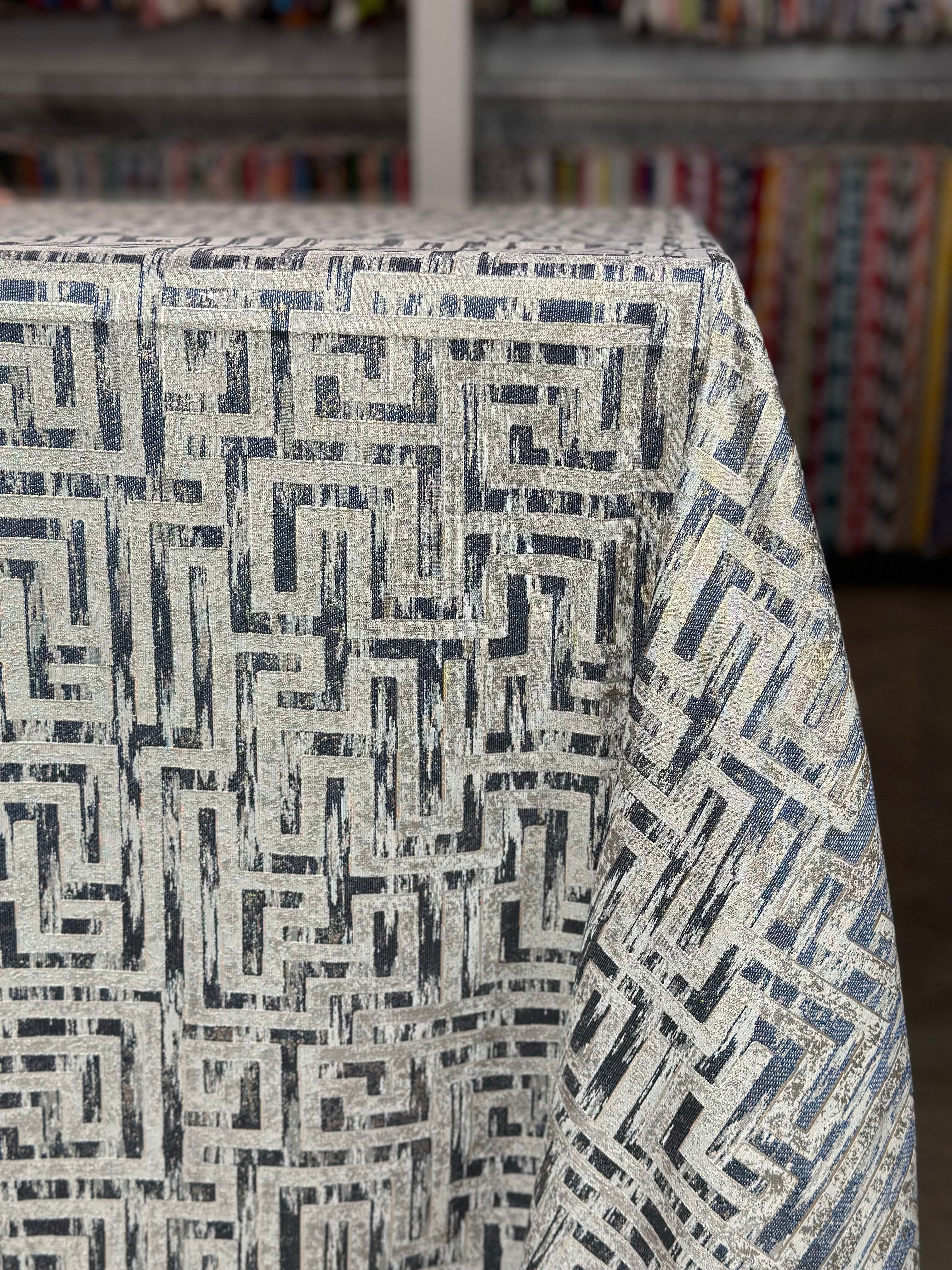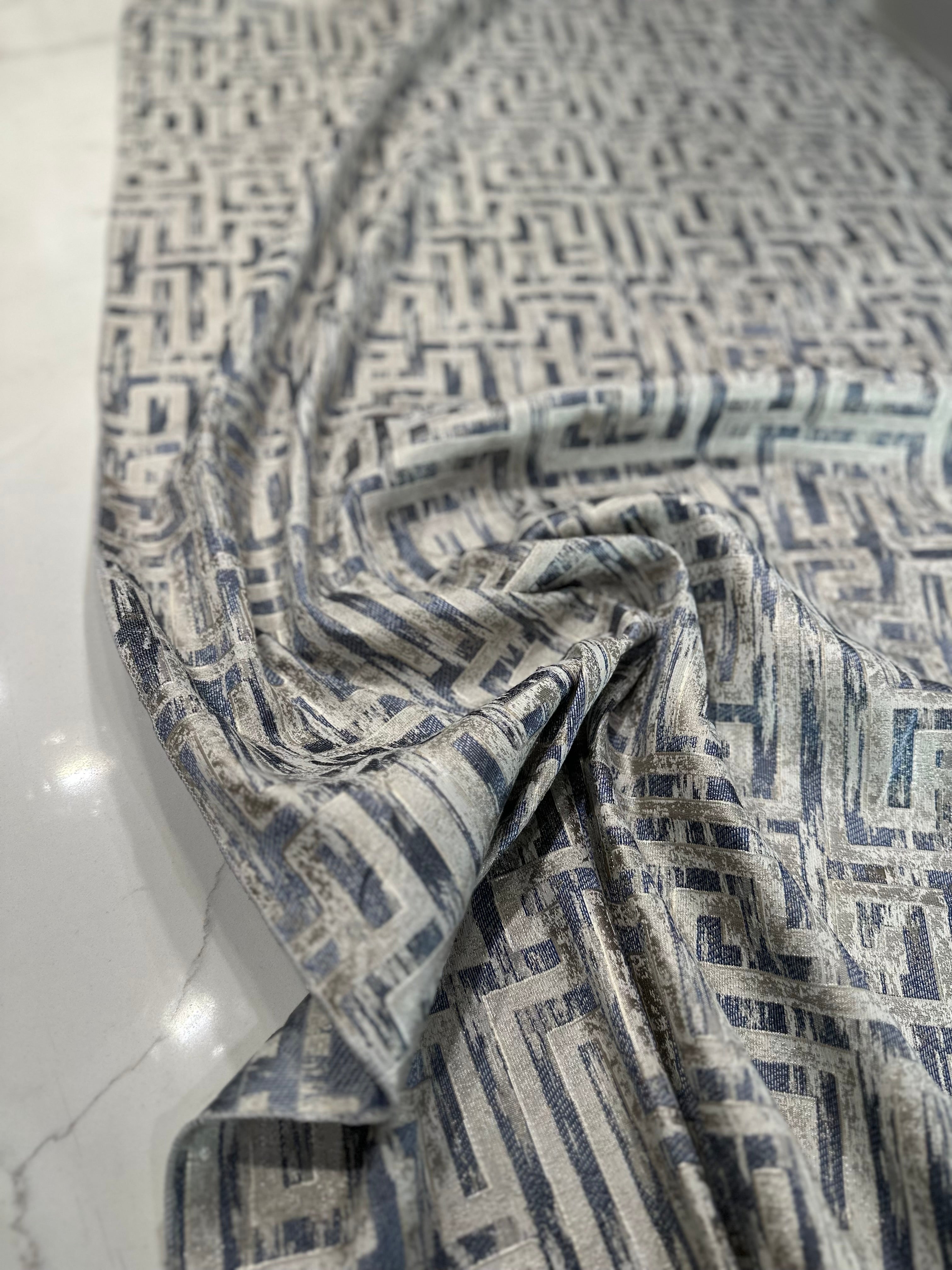 Fabric Collection: This fabric is a Jacquard material with a metallic geometric embroidered design throughout.