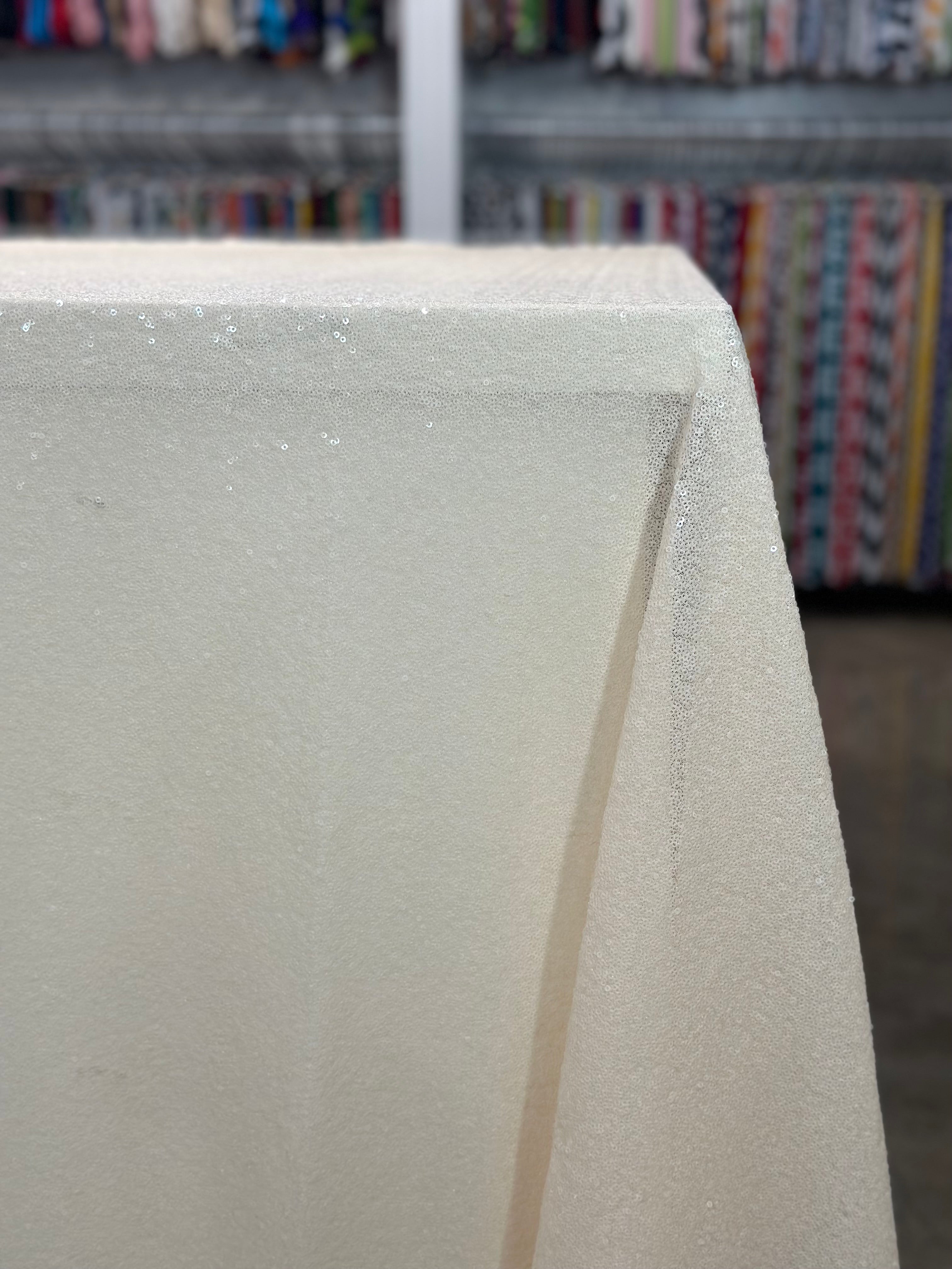 Table linen sizes that exceed the width of the fabric will have seams. All seams are sewn with 5 thread overlock sergers for long lasting durability.