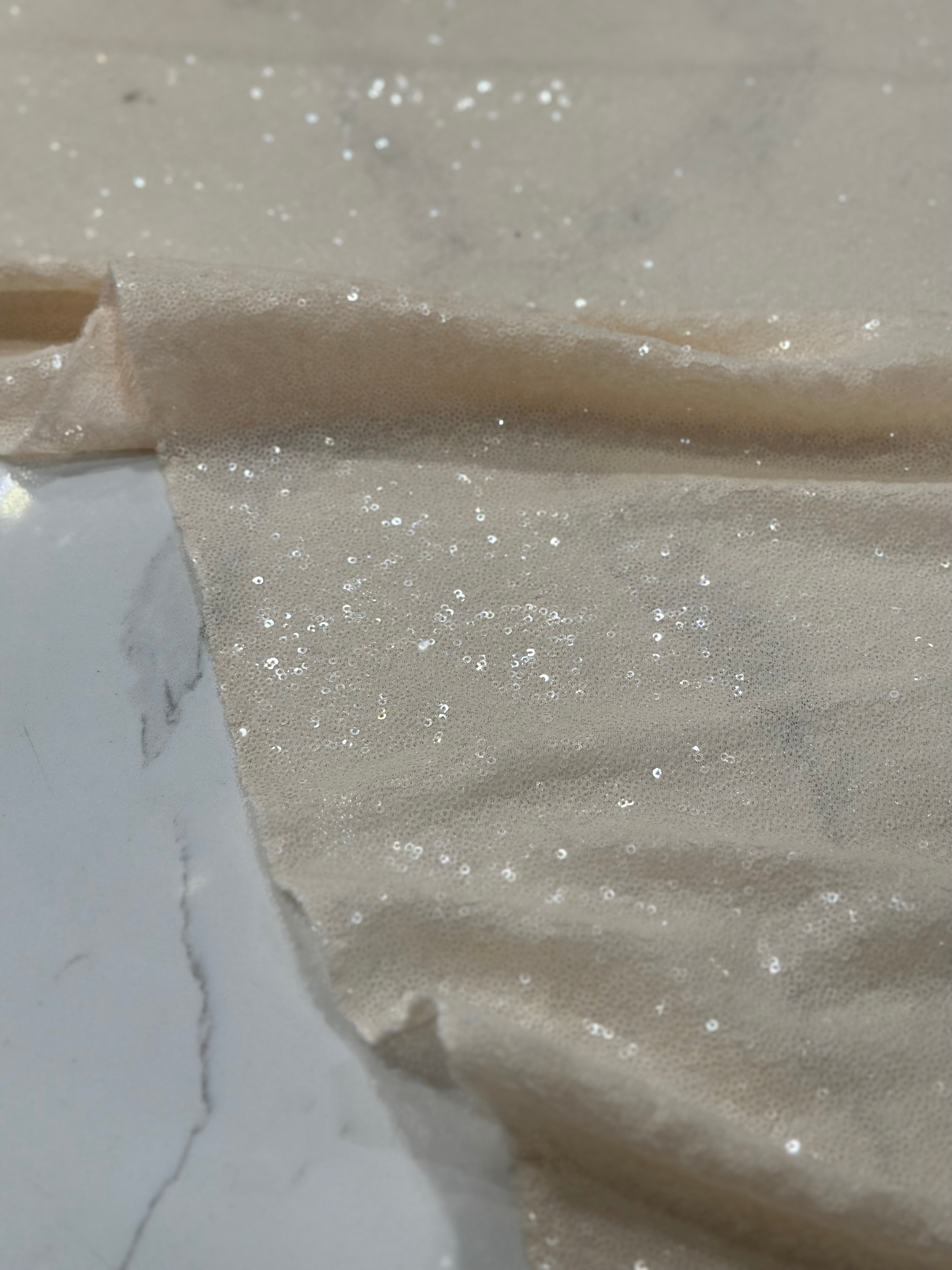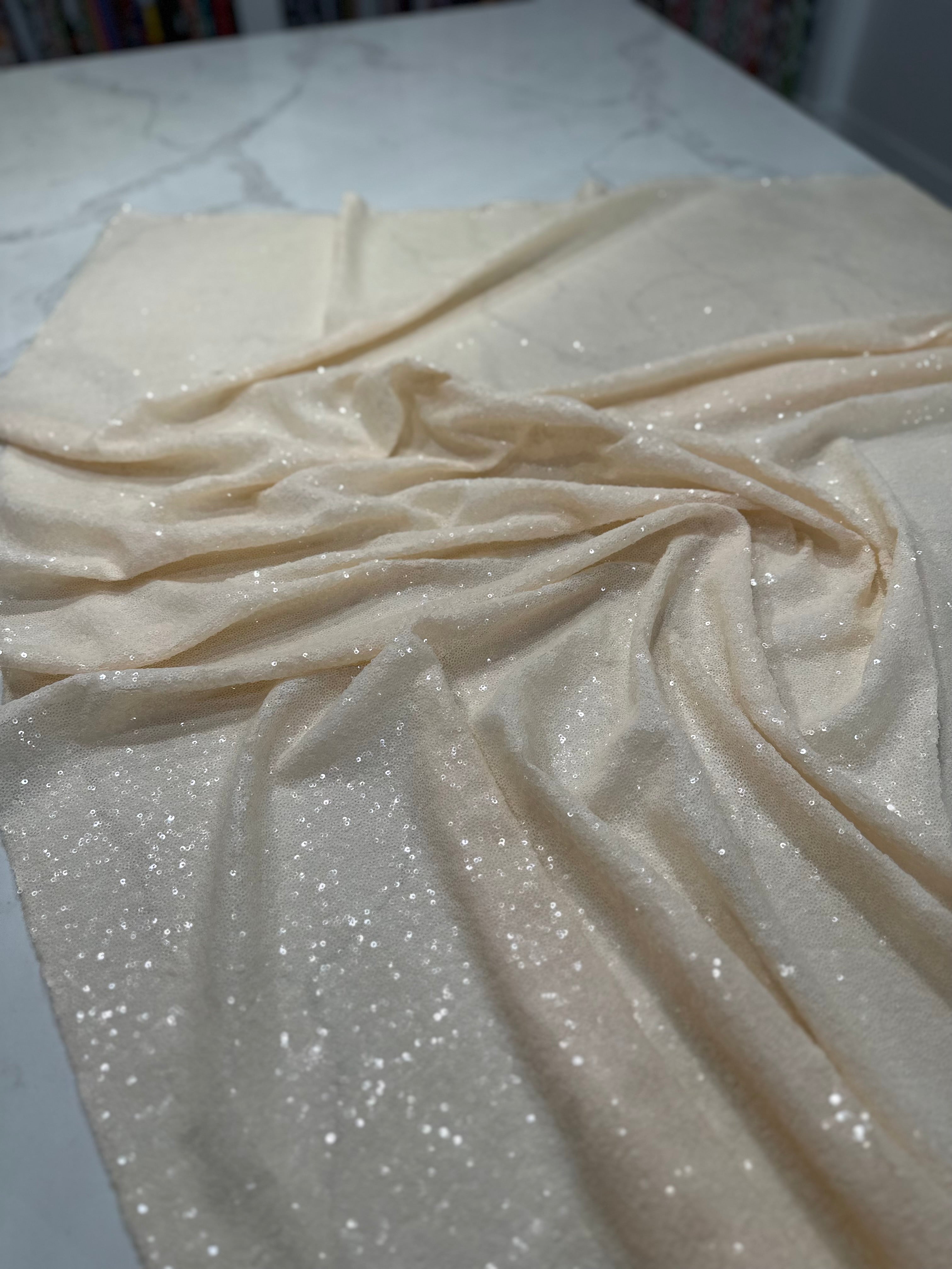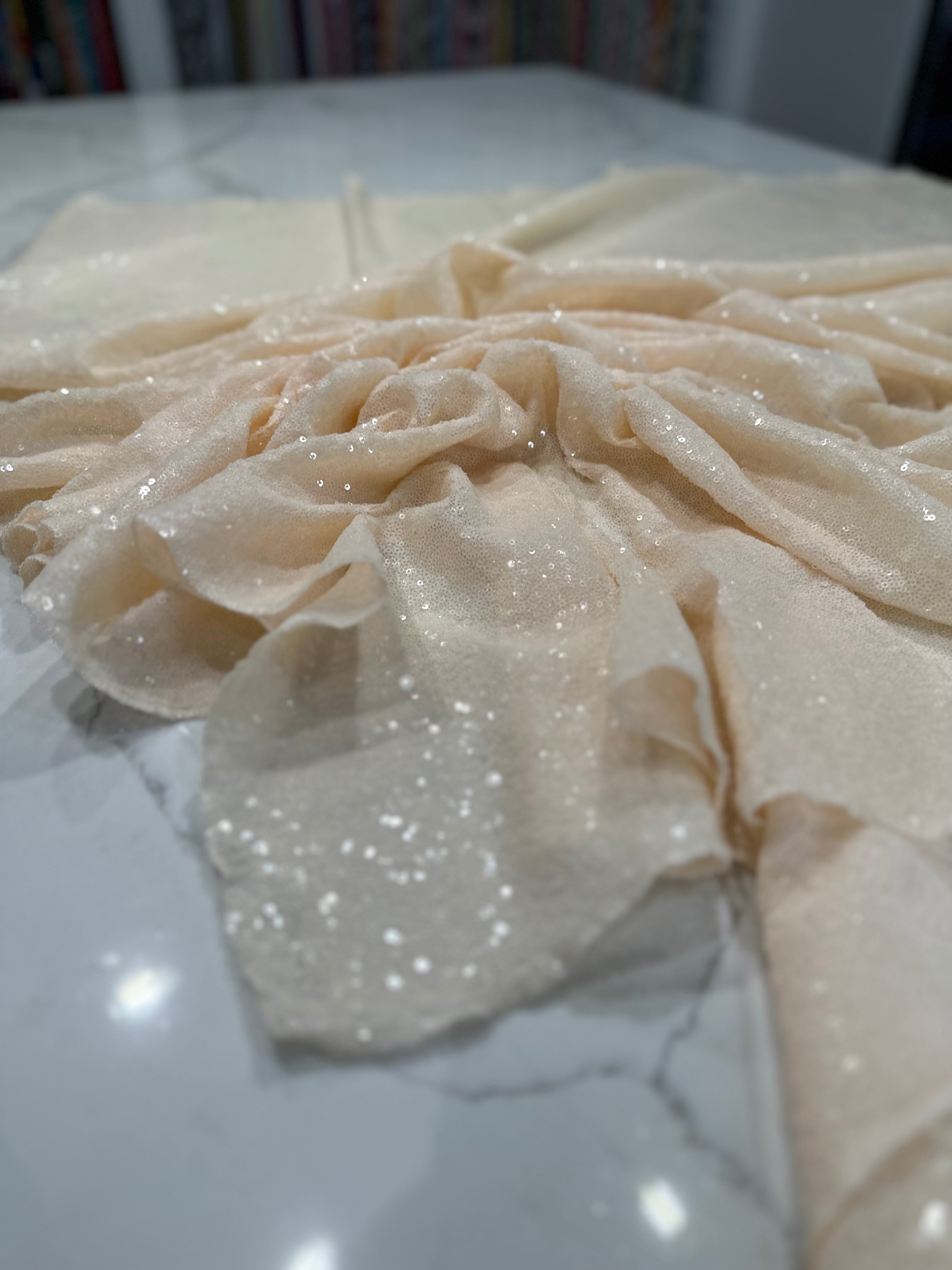 Fabric Collection: This fabric has a mesh base w/ mini sequins clusters embroidered throughout the fabric which gives it a solid look.