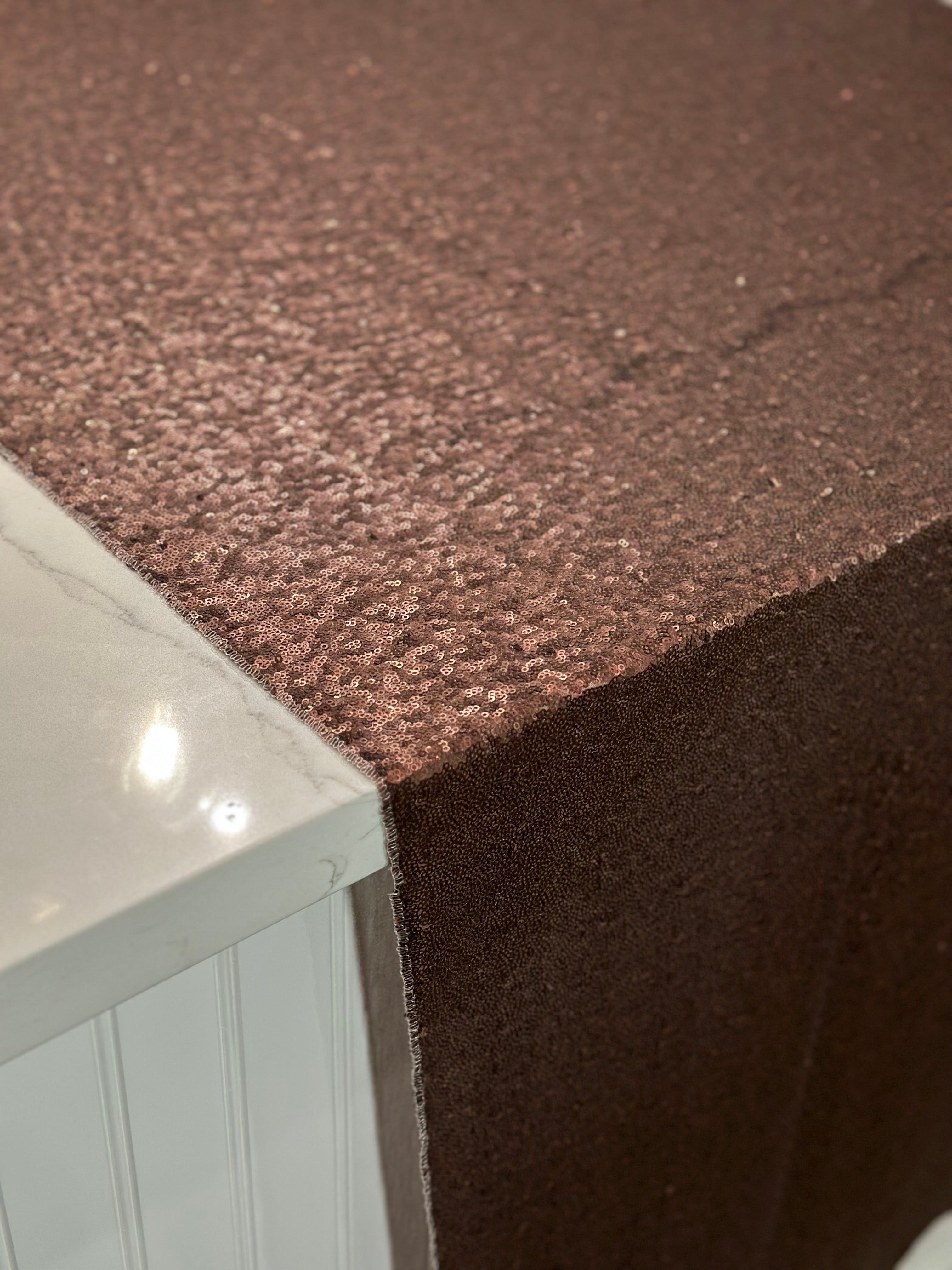 Table linen sizes that exceed the width of the fabric will have seams. All seams are sewn with 5 thread overlock sergers for long lasting durability.