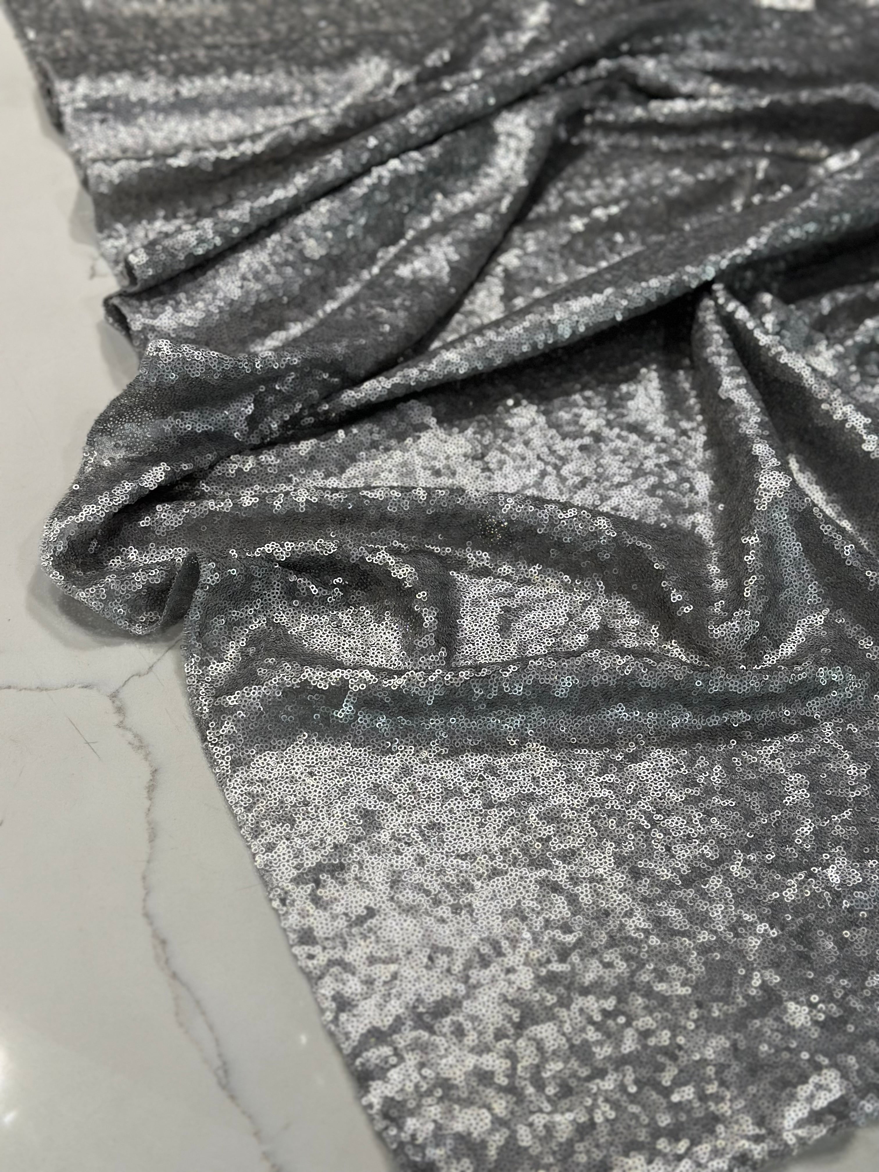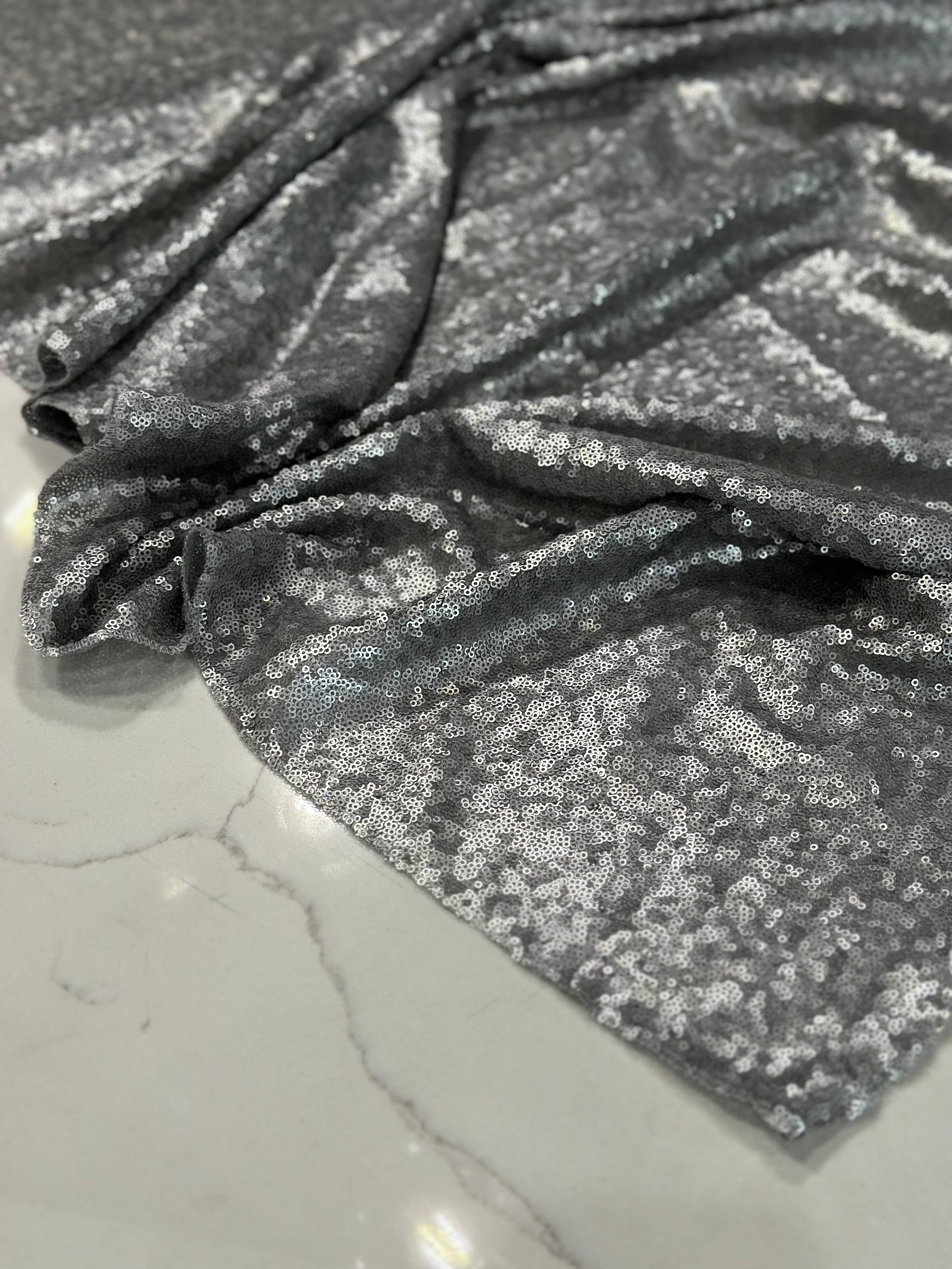 Fabric Collection: This fabric has a mesh base w/ mini sequins clusters embroidered throughout the fabric which gives it a solid look.