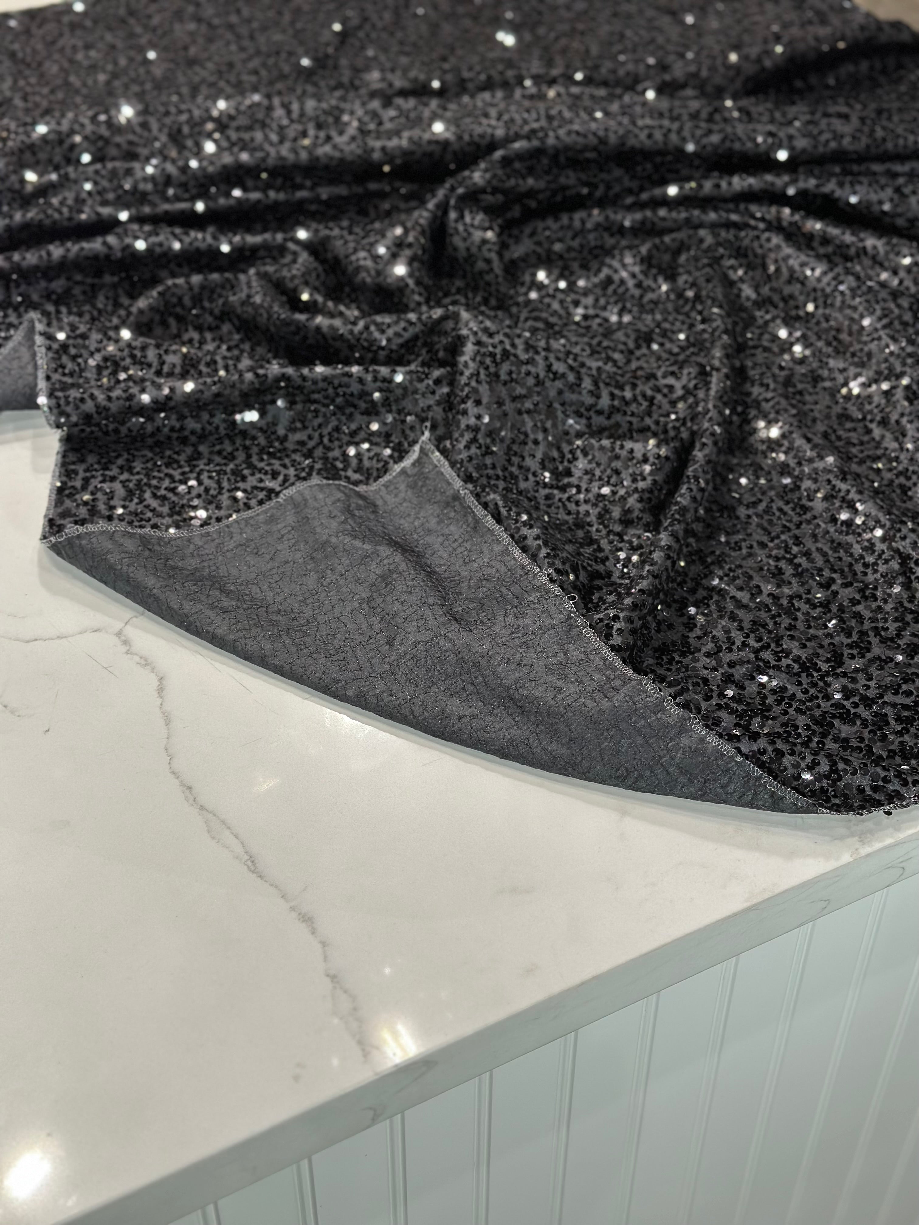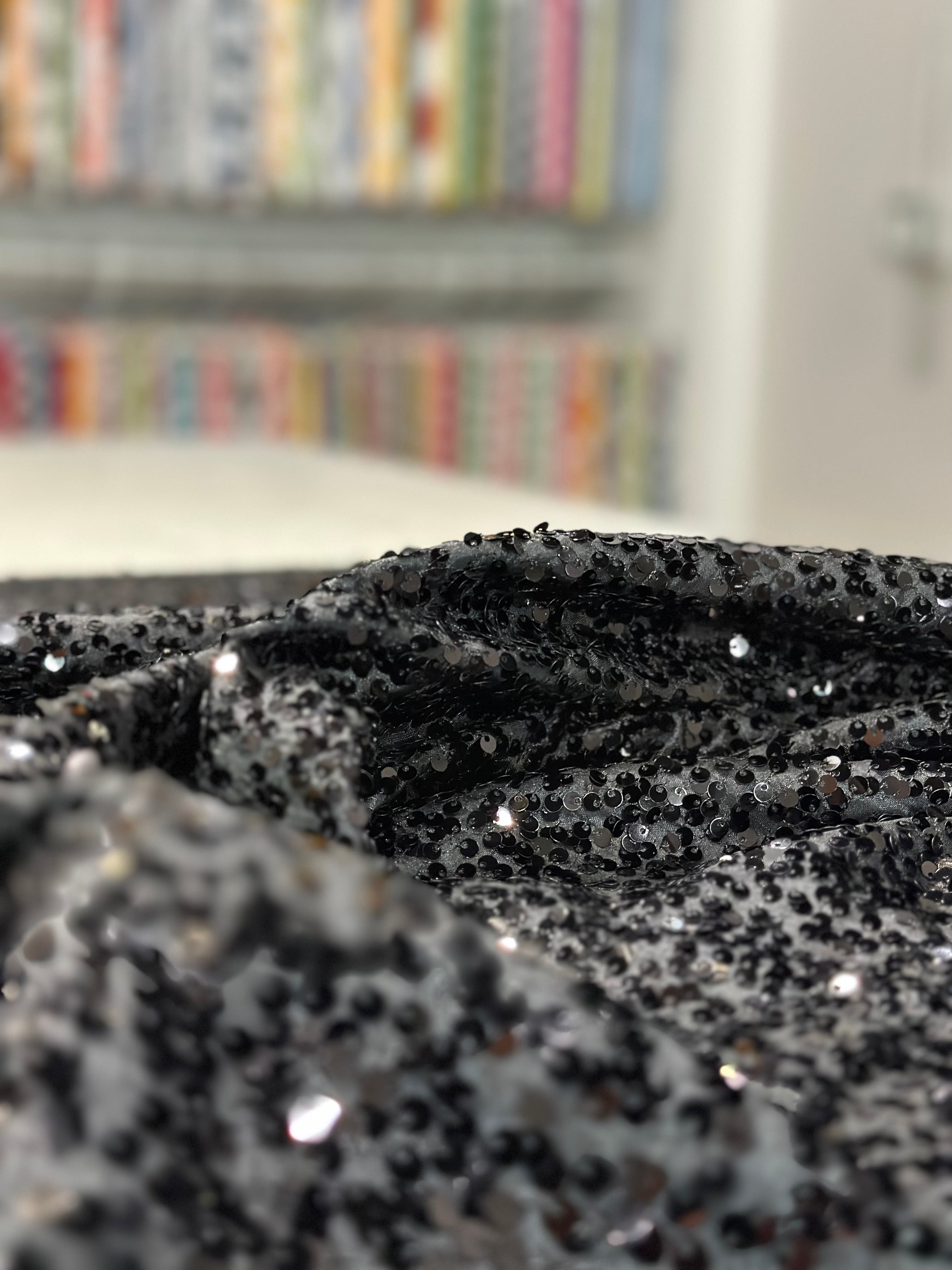 Fabric Collection: This fabric has a solid taffeta base w/ sequins embroidered all over.