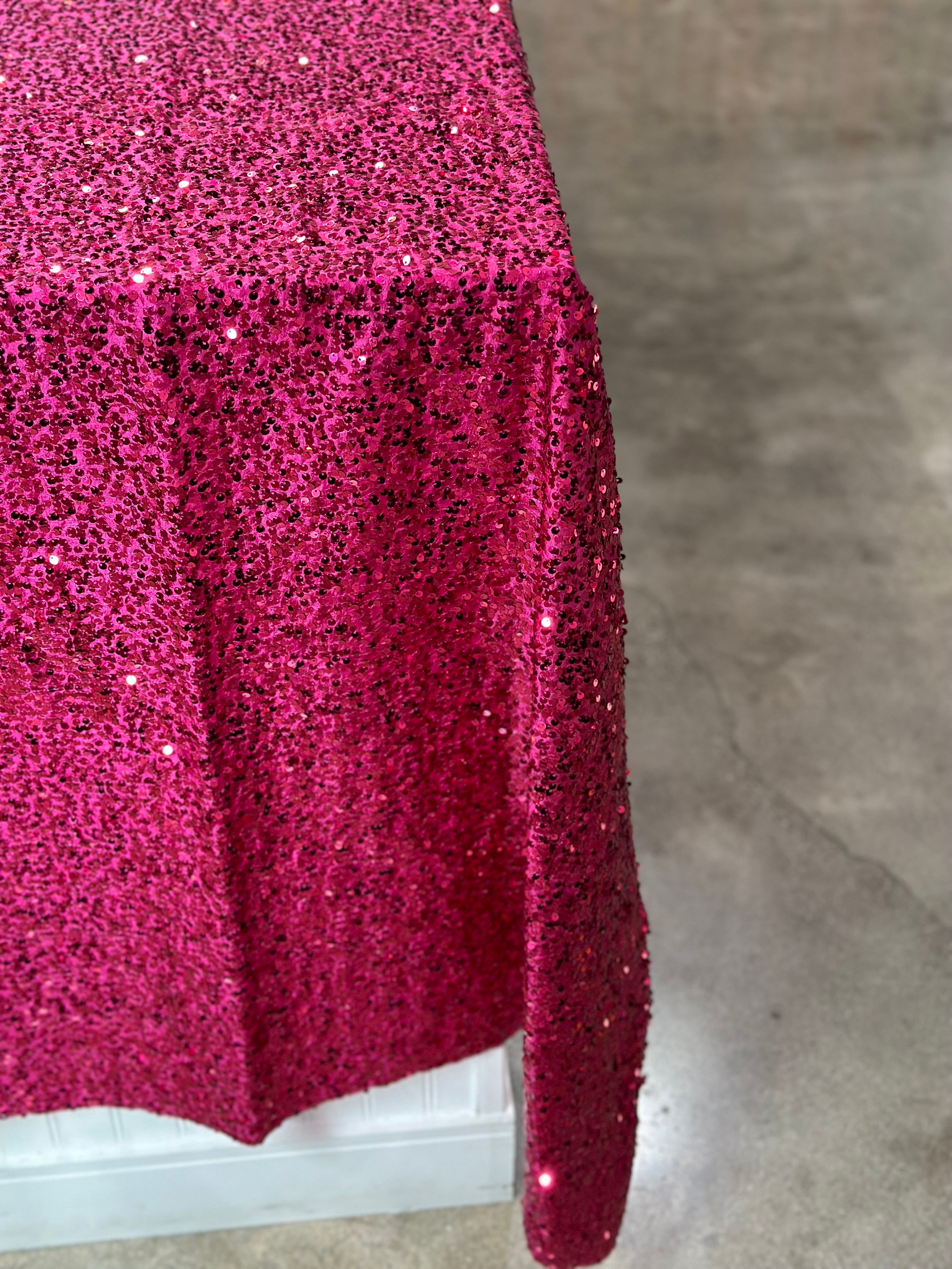 Table linen sizes that exceed the width of the fabric will have seams. All seams are sewn with 5 thread overlock sergers for long lasting durability.