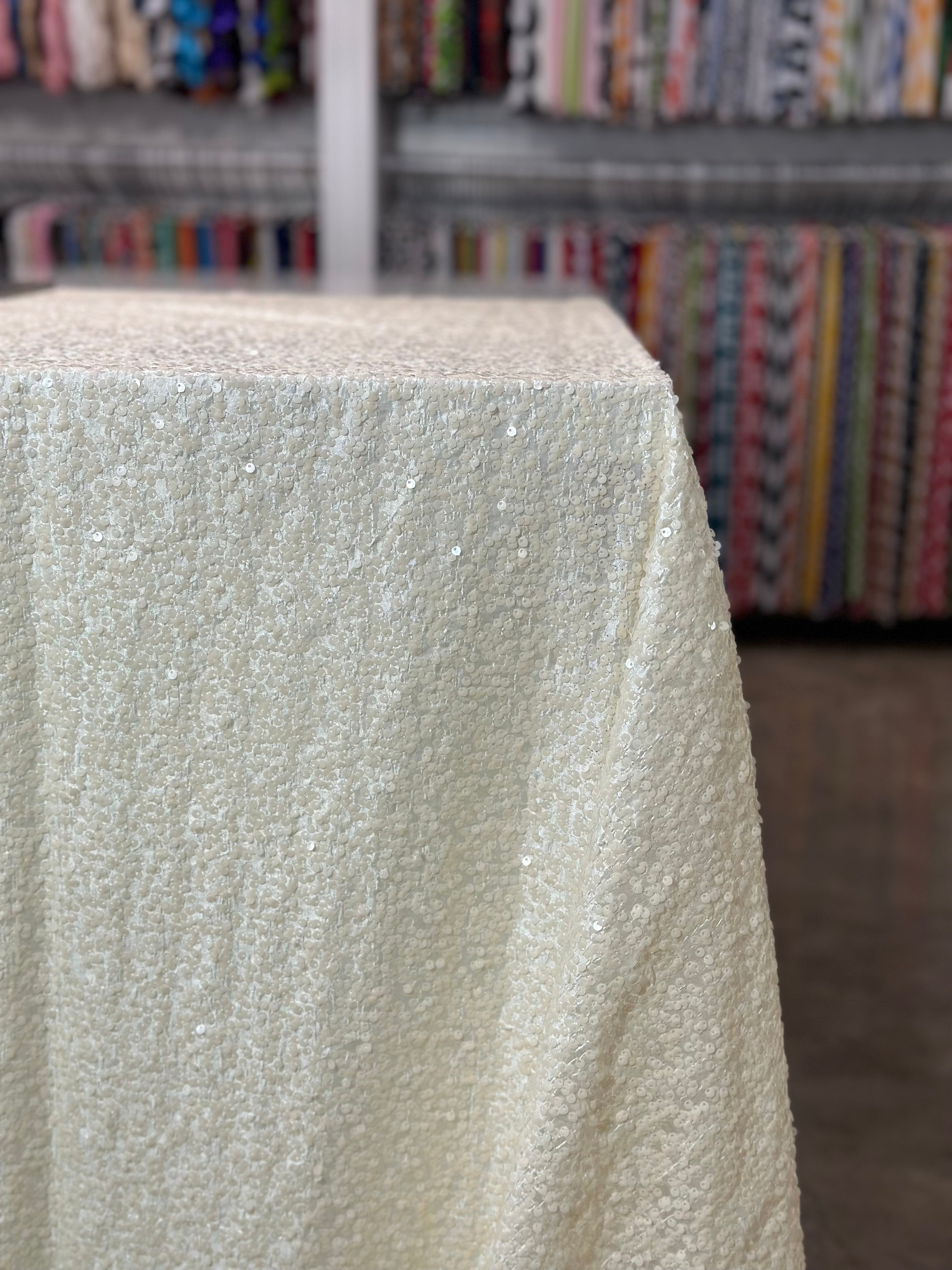 Table linen sizes that exceed the width of the fabric will have seams. All seams are sewn with 5 thread overlock sergers for long lasting durability.