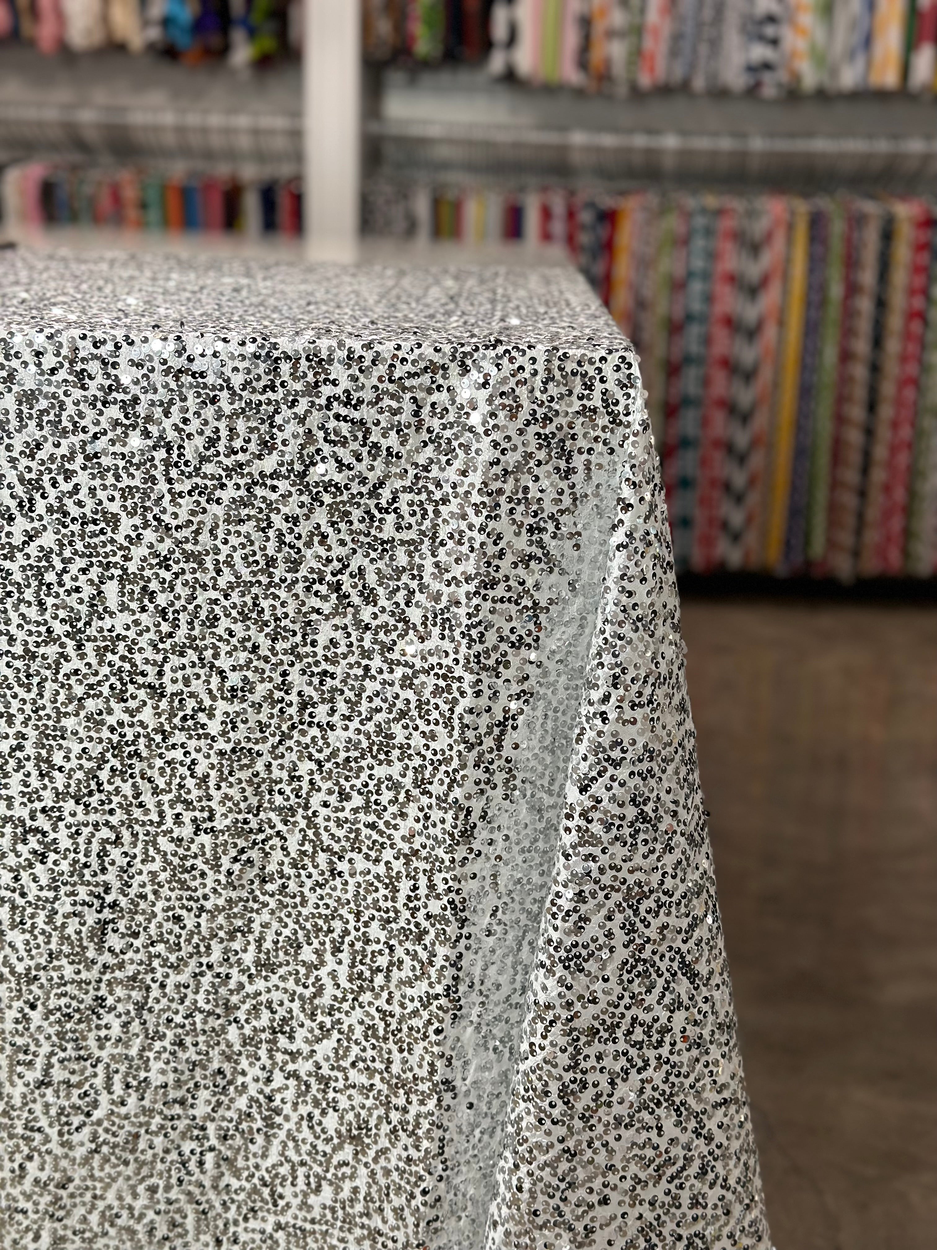 Taffeta Sequins Table Linen in Silver and White
