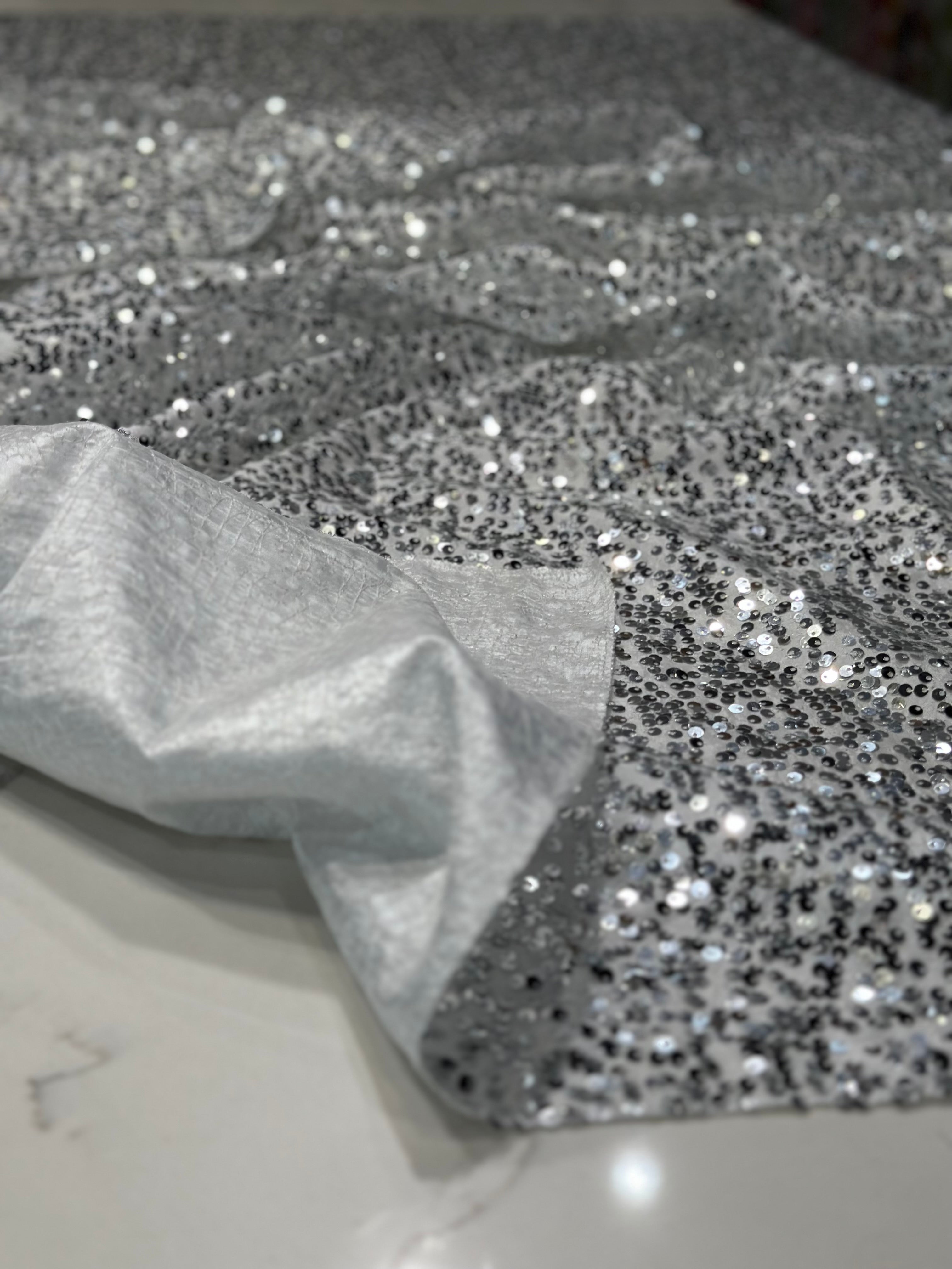 Fabric Collection: This fabric has a solid taffeta base w/ sequins embroidered all over.
