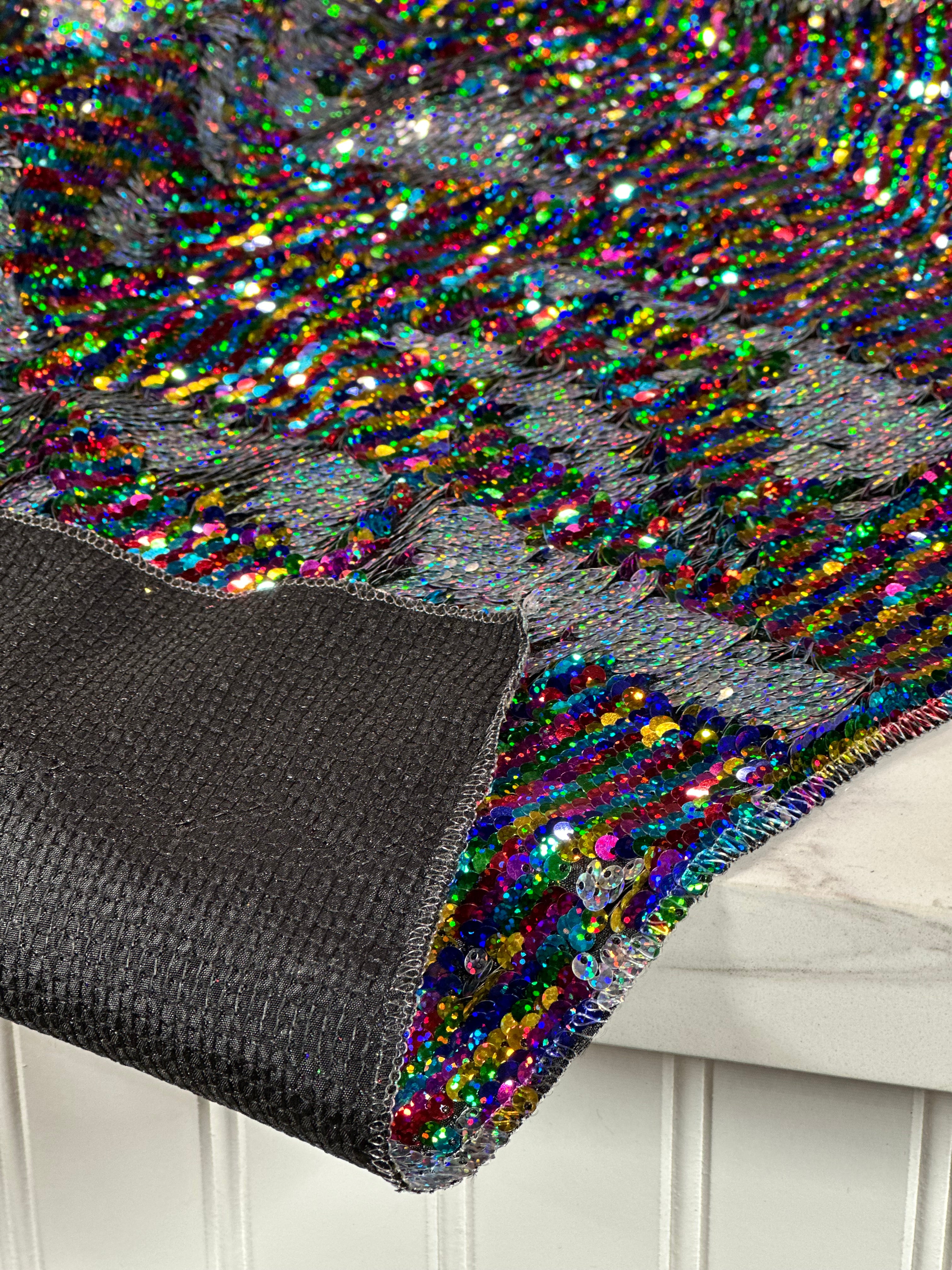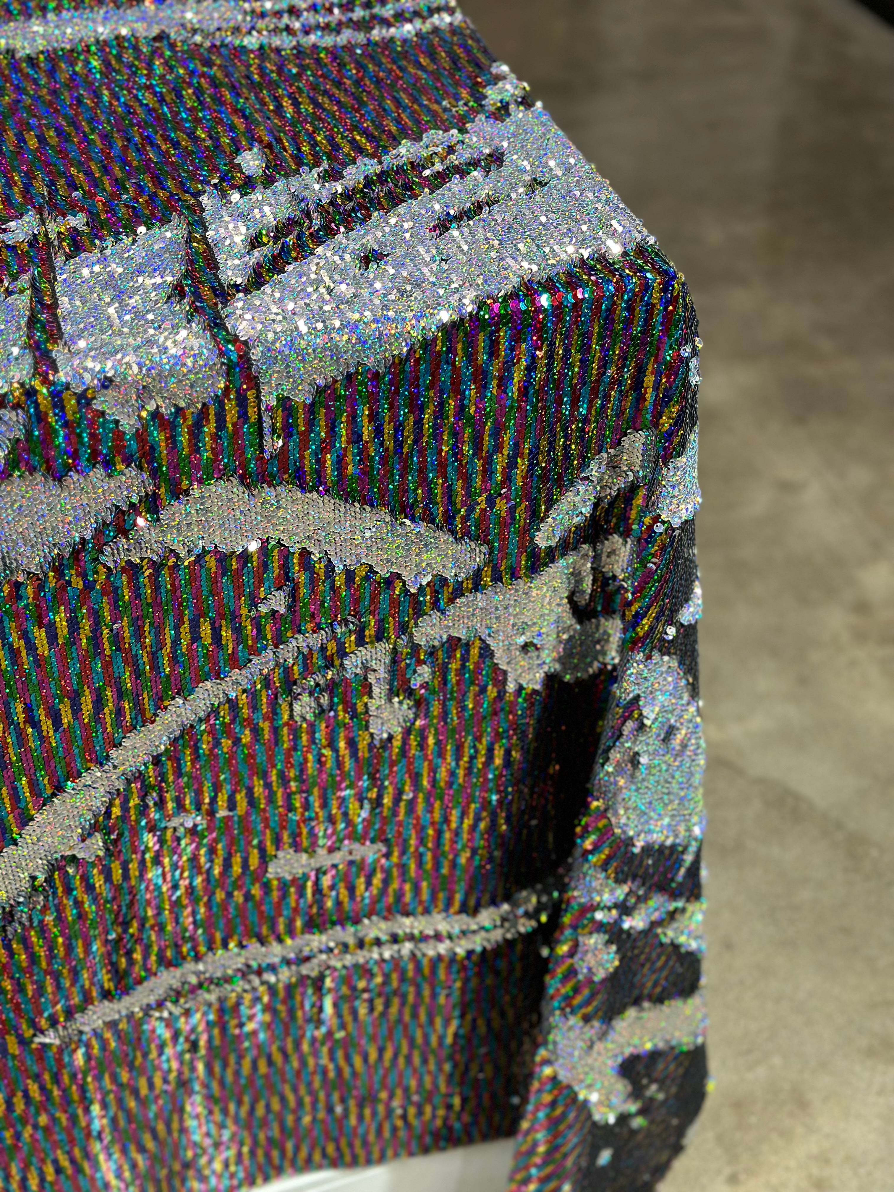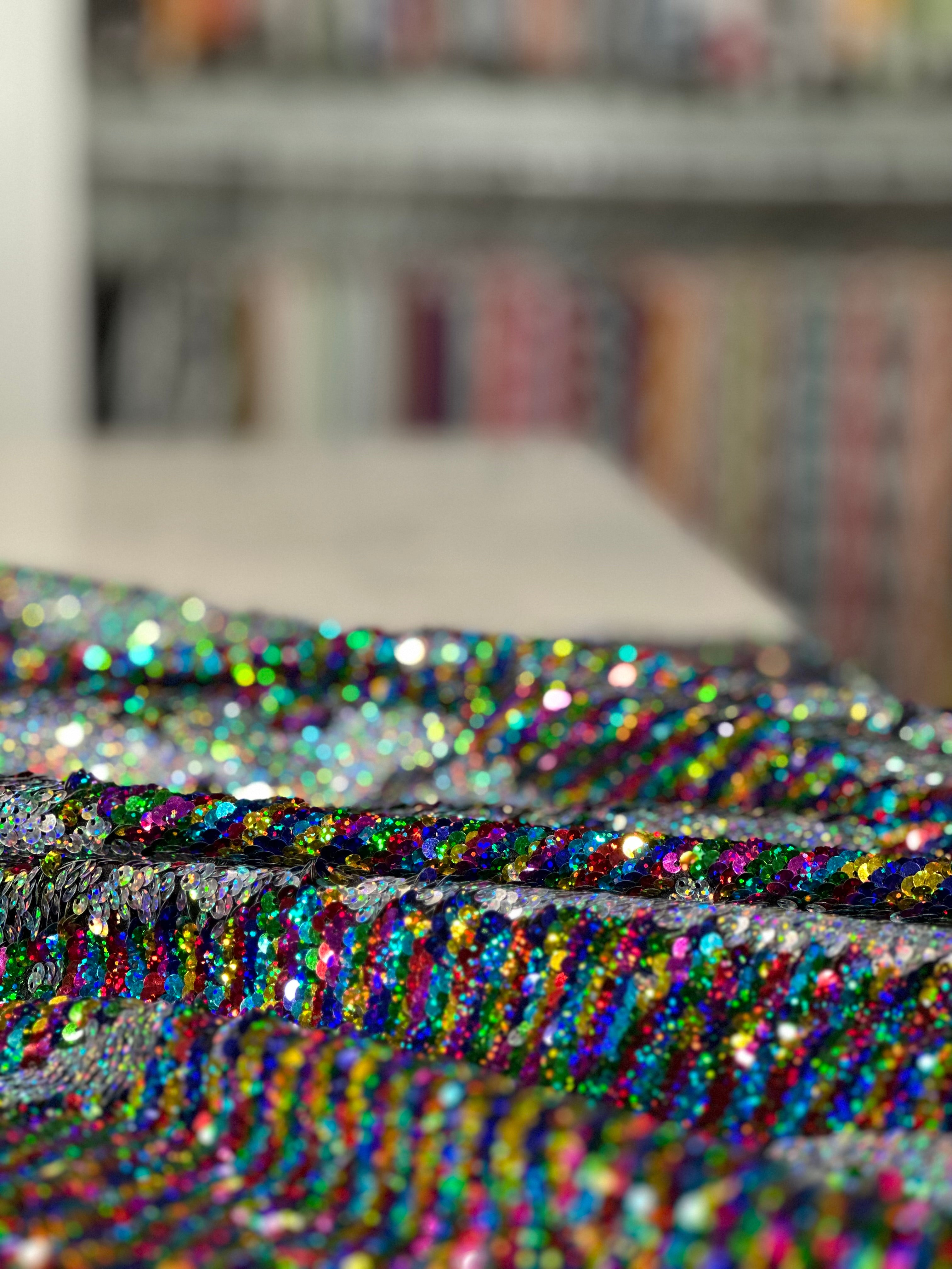 Fabric Collection: This fabric has a unique two-tone sequins design throughout that allows you to change the sequins color.