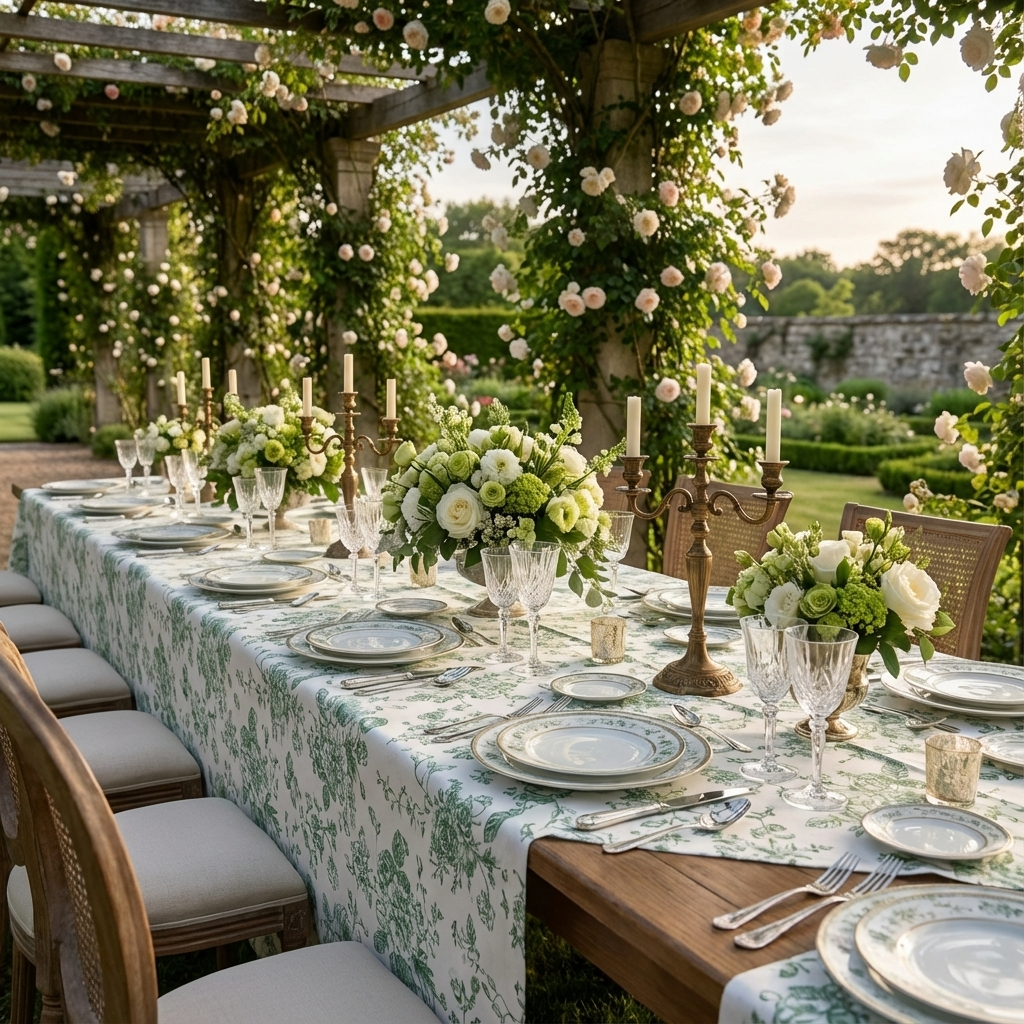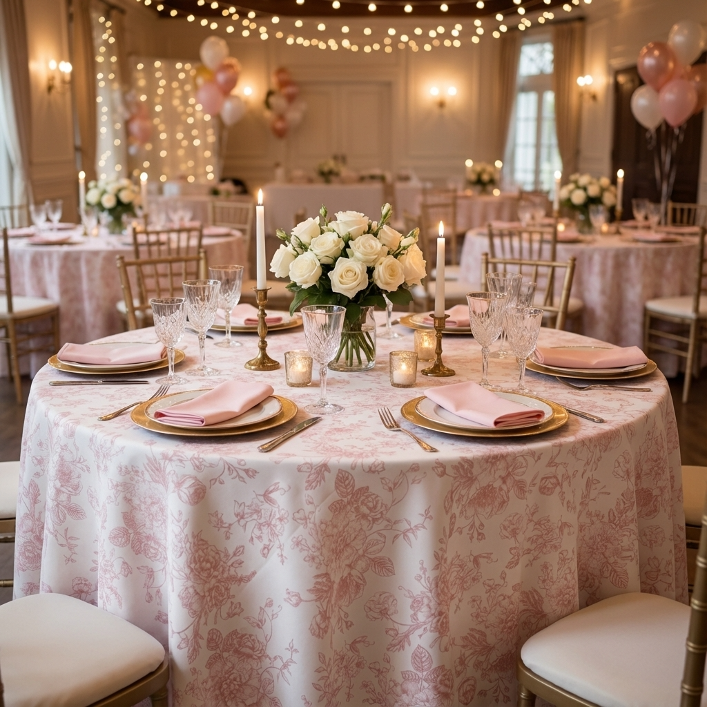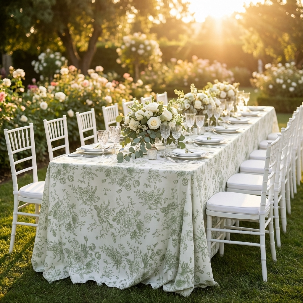 The French Toile Table Linens Collection offers a timeless blend of elegance and charm, perfect for those looking to add a touch of classic French sophistication to their event or home décor. With its intricate pastoral patterns and delicate detailing, these linens evoke a sense of tradition while maintaining a refined, stylish appeal. Available in a variety of fabrics, this collection is ideal for weddings, garden parties, and upscale dinners. Whether you’re designing a formal setting or a casual yet elegant gathering, the French Toile collection will provide an exquisite backdrop for your occasion.