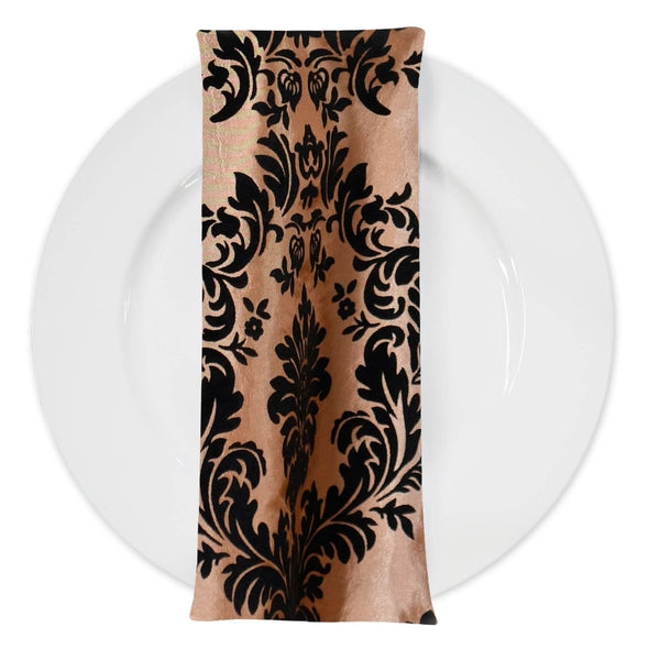 Damask Flocking Taffeta Table Napkin in Black on Gold