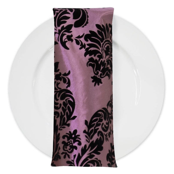 Damask Flocking Taffeta Table Napkin in Black on Pink