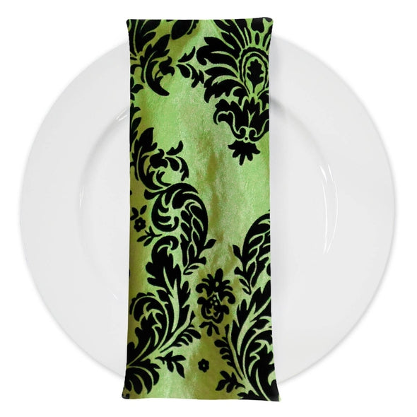 Damask Flocking Taffeta Table Napkin in Black on Olive