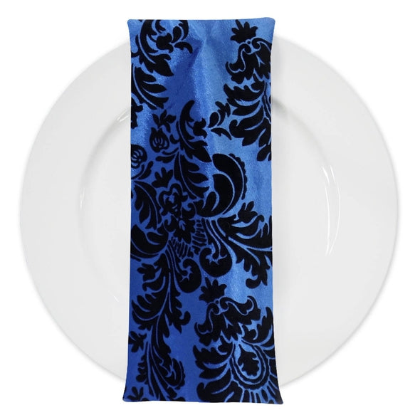 Damask Flocking Taffeta Table Napkin in Black on Royal