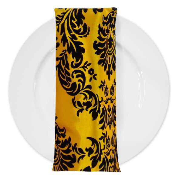 Damask Flocking Taffeta Table Napkin in Black on Yellow
