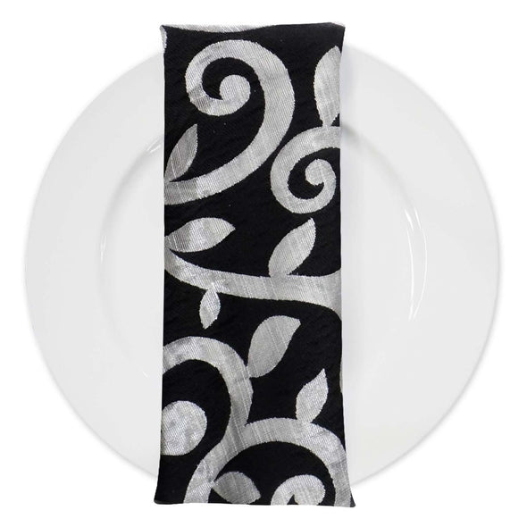 Tuscany Jacquard (Reversible) Table Napkin in Black and Silver