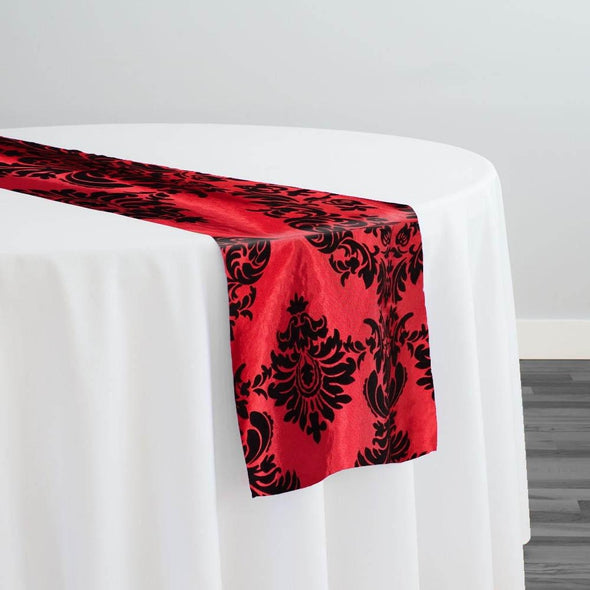 Damask Flocking Taffeta Table Runner in Black on Red