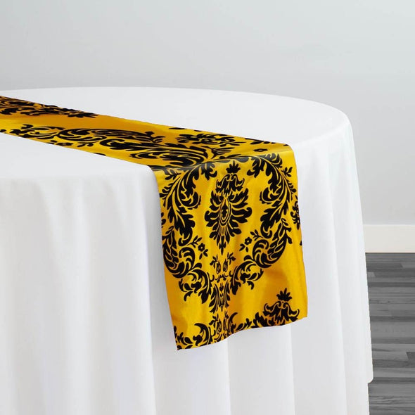Damask Flocking Taffeta Table Runner in Black on Yellow