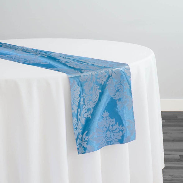 Damask Flocking Taffeta Table Runner in Silver on Turquoise