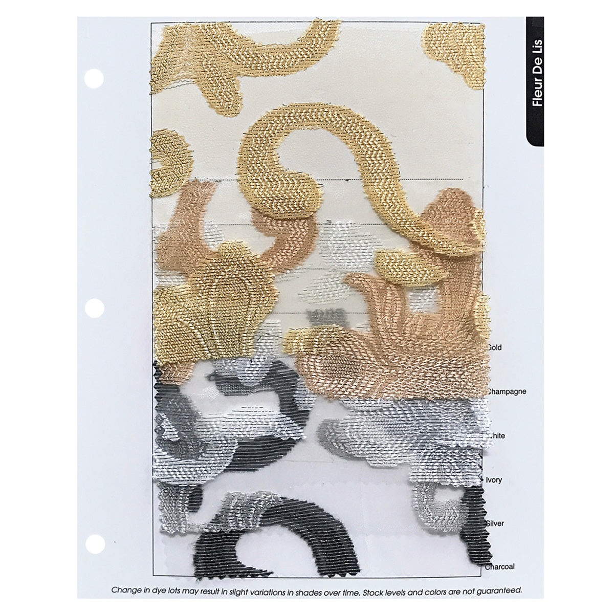 Fabric Collection: This material is a sheer Jacquard embroidery of our Fleur De Lis design throughout.