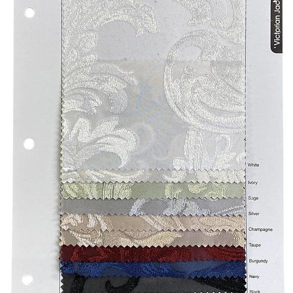 Fabric Collection: This fabric has a sheer base with a velvet texture embroidery in our "Victorian" Jacquard design throughout.