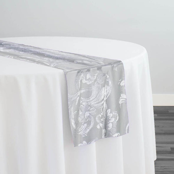 Victorian Jacquard Sheer Table Runner in Silver