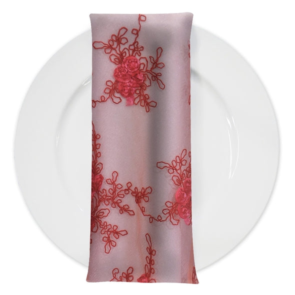 Baby Rose Embroidery (w/ Poly Lining) Table Napkin in Coral