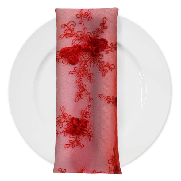 Baby Rose Embroidery (w/ Poly Lining) Table Napkin in Red