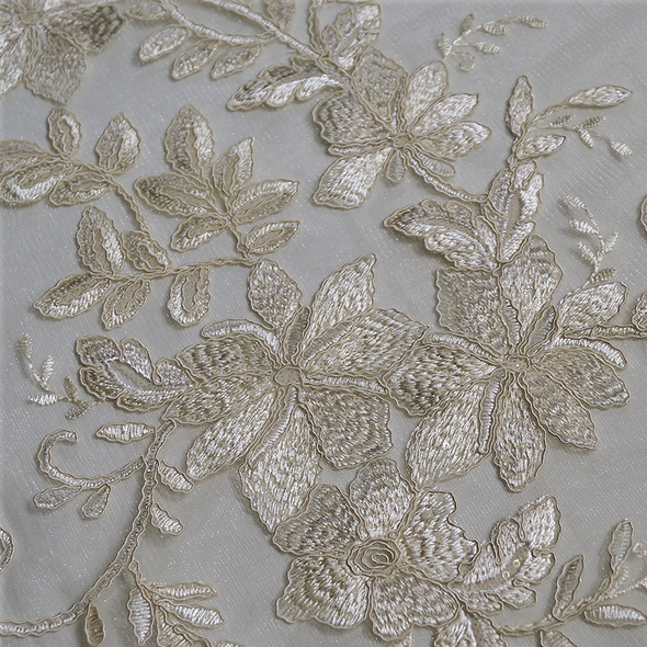 Fabric Collection: This material has a mesh/sheer base w/ sequins floral embroidery throughout the fabric.