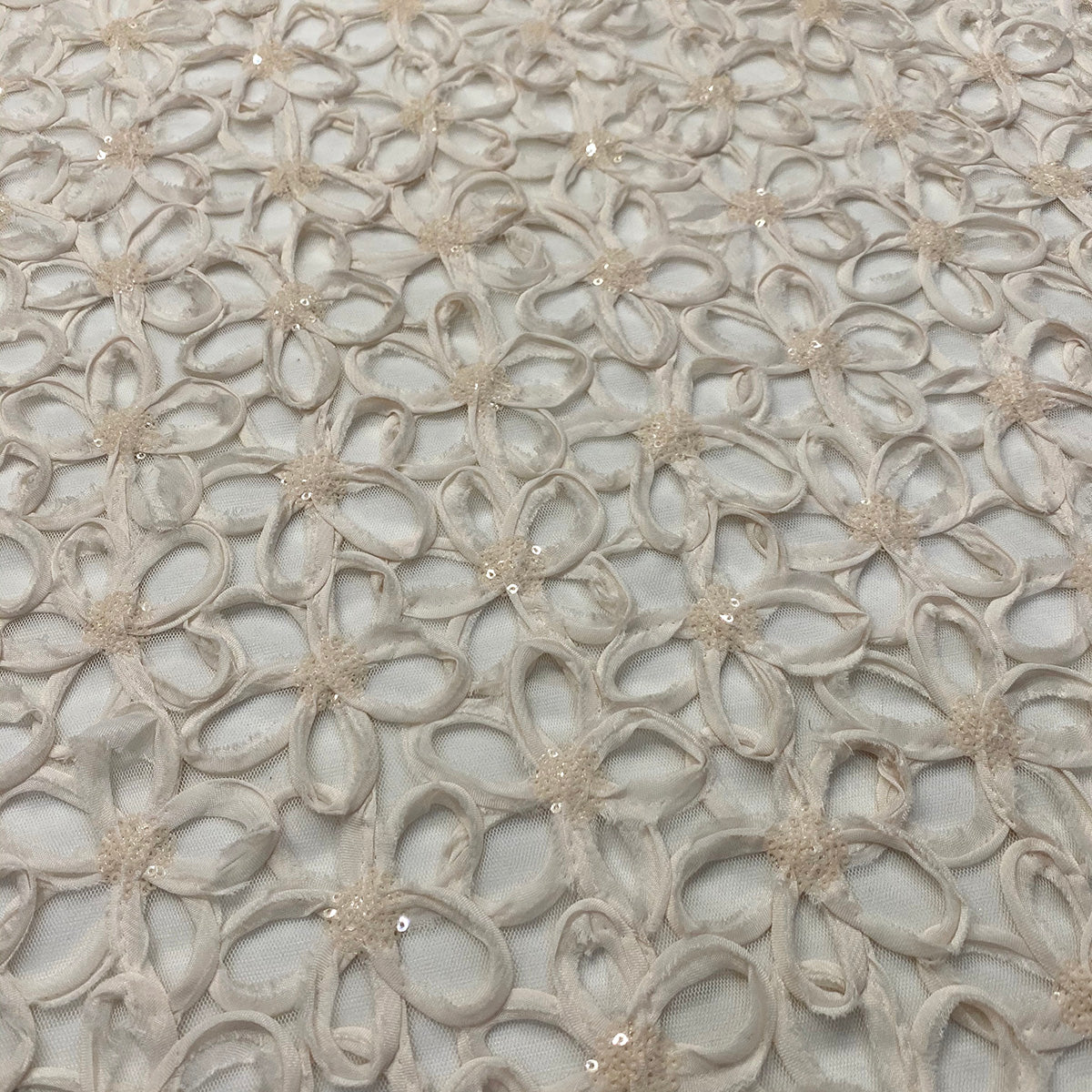 Fabric Collection: This fabric has a mesh/sheer base w/ a flower petal embroidery design w/ sequins.