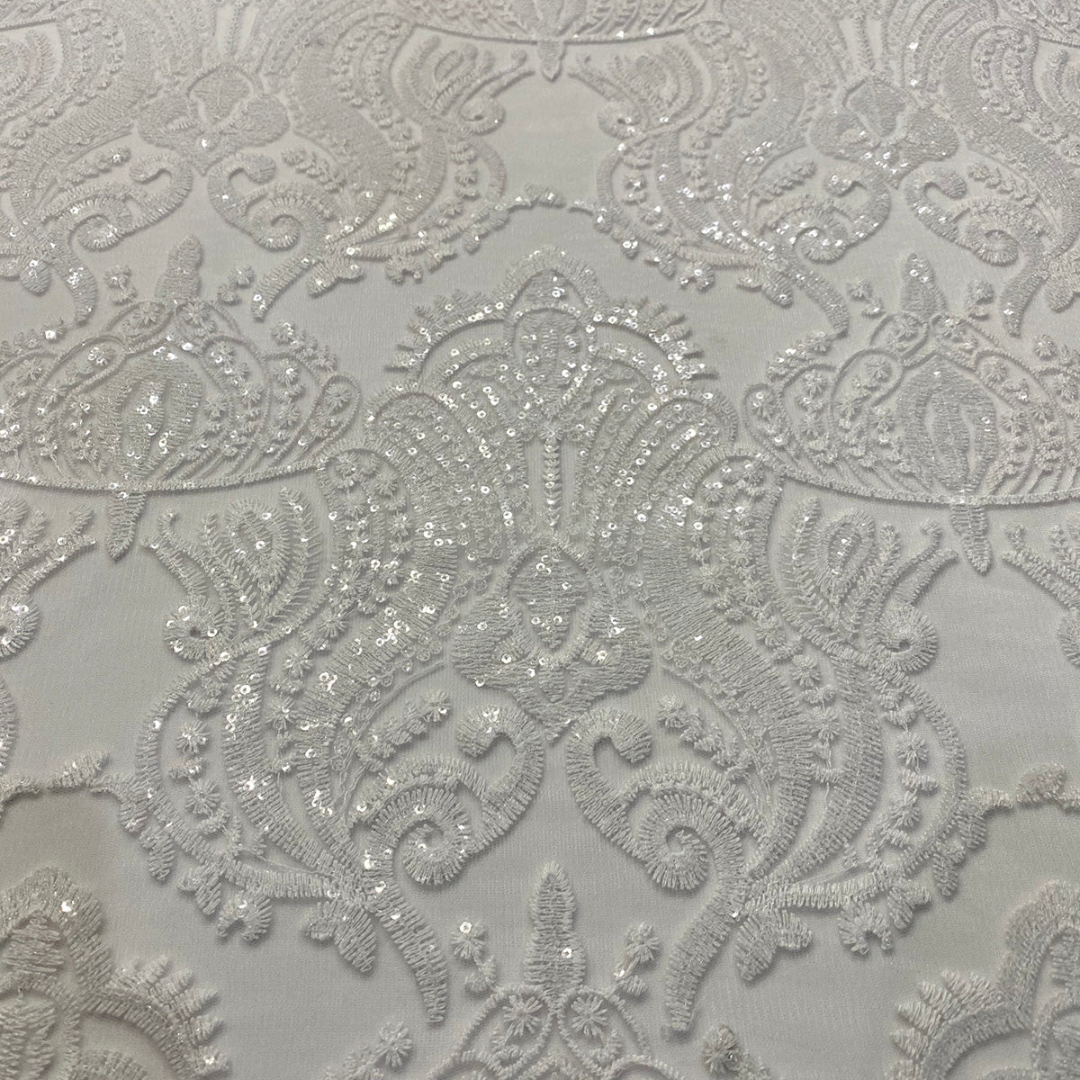 Fabric Collection: This fabric has a mesh base w/ our gorgeous embroidered & sequined design throughout the fabric.