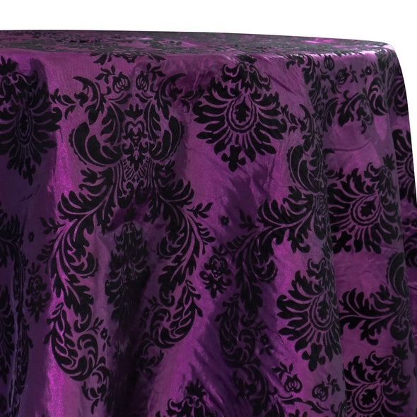 Damask Flocking Taffeta Table Linen in Black on Plum