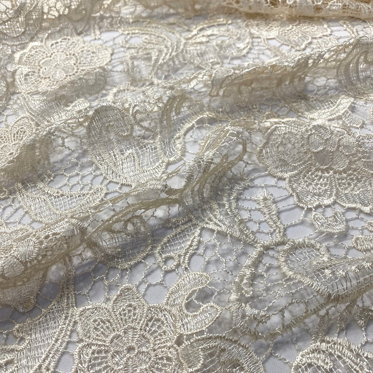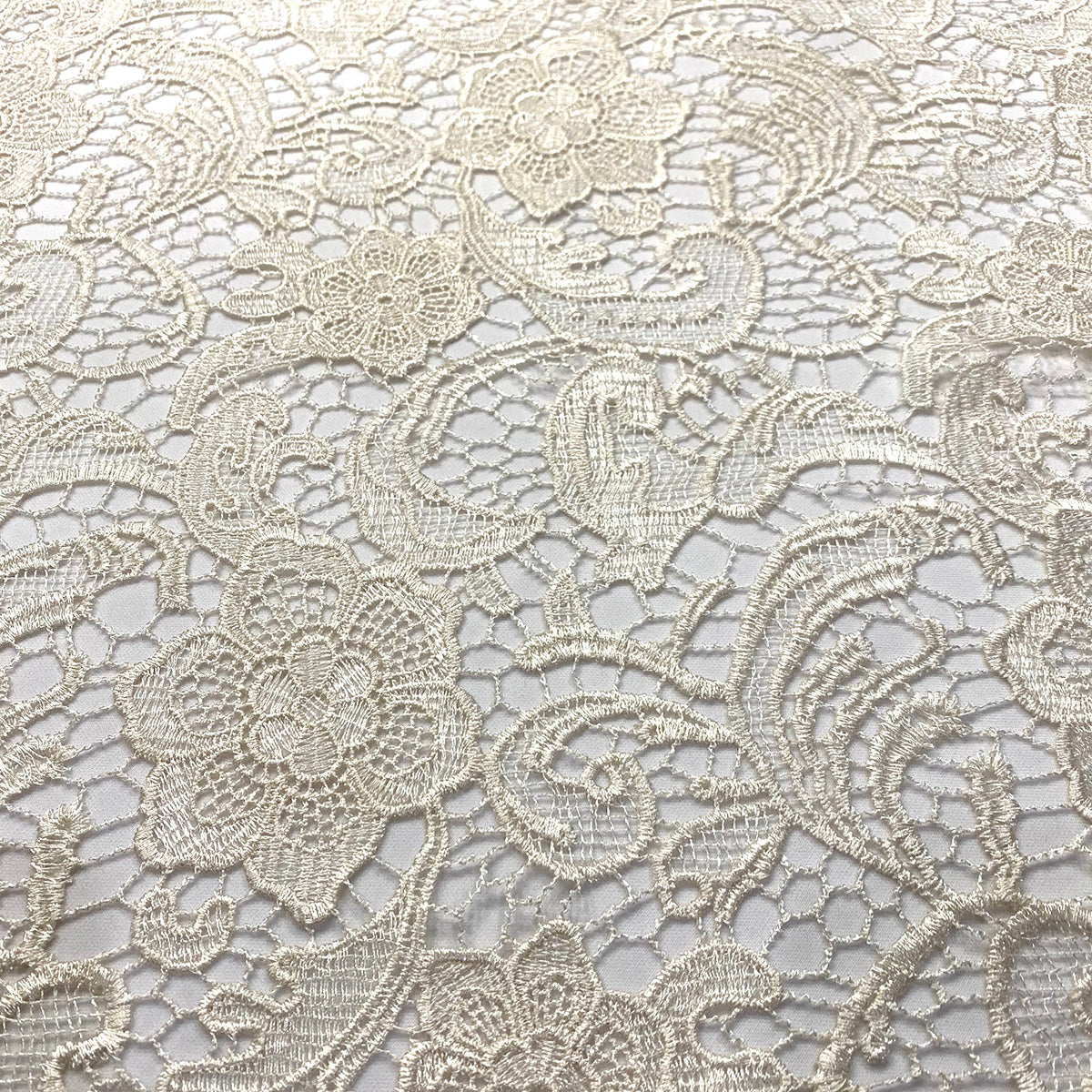 Fabric Collection: This material is a crochet lace embroidery look throughout the fabric.
