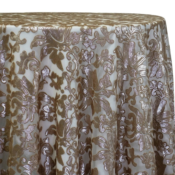 Fabric Collection: This material has a mesh/sheer base w/ sequins embroidery in our "Milan" design throughout the fabric.