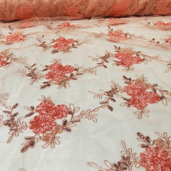 Fabric Collection: This fabric has a mesh/sheer base w/ a floral & sequins embroidery design.