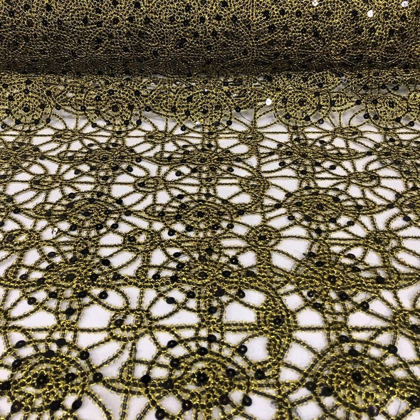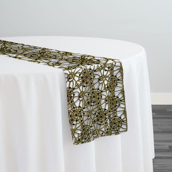 Flower Chain Lace Table Runner in Black and Gold
