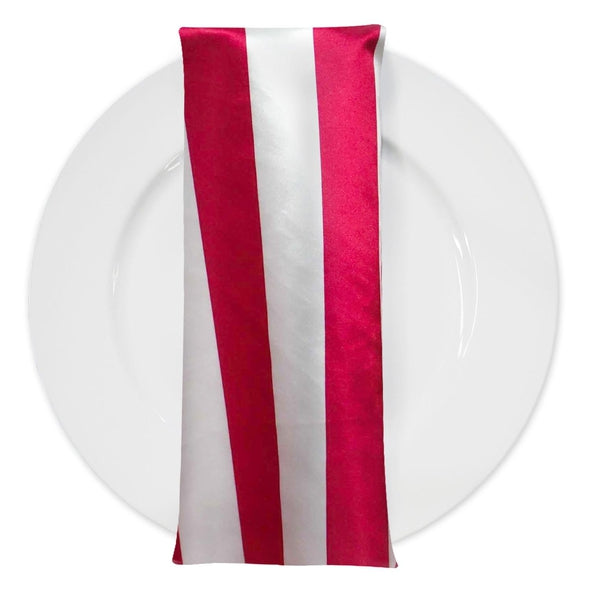 2" Satin Stripe Table Napkin in White and Fuchsia