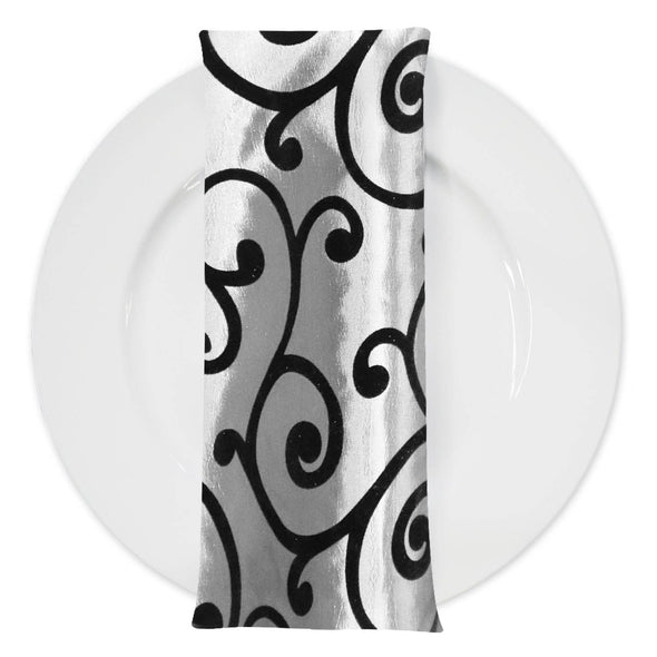 Swirl Flocking Taffeta Table Napkins in Black and White